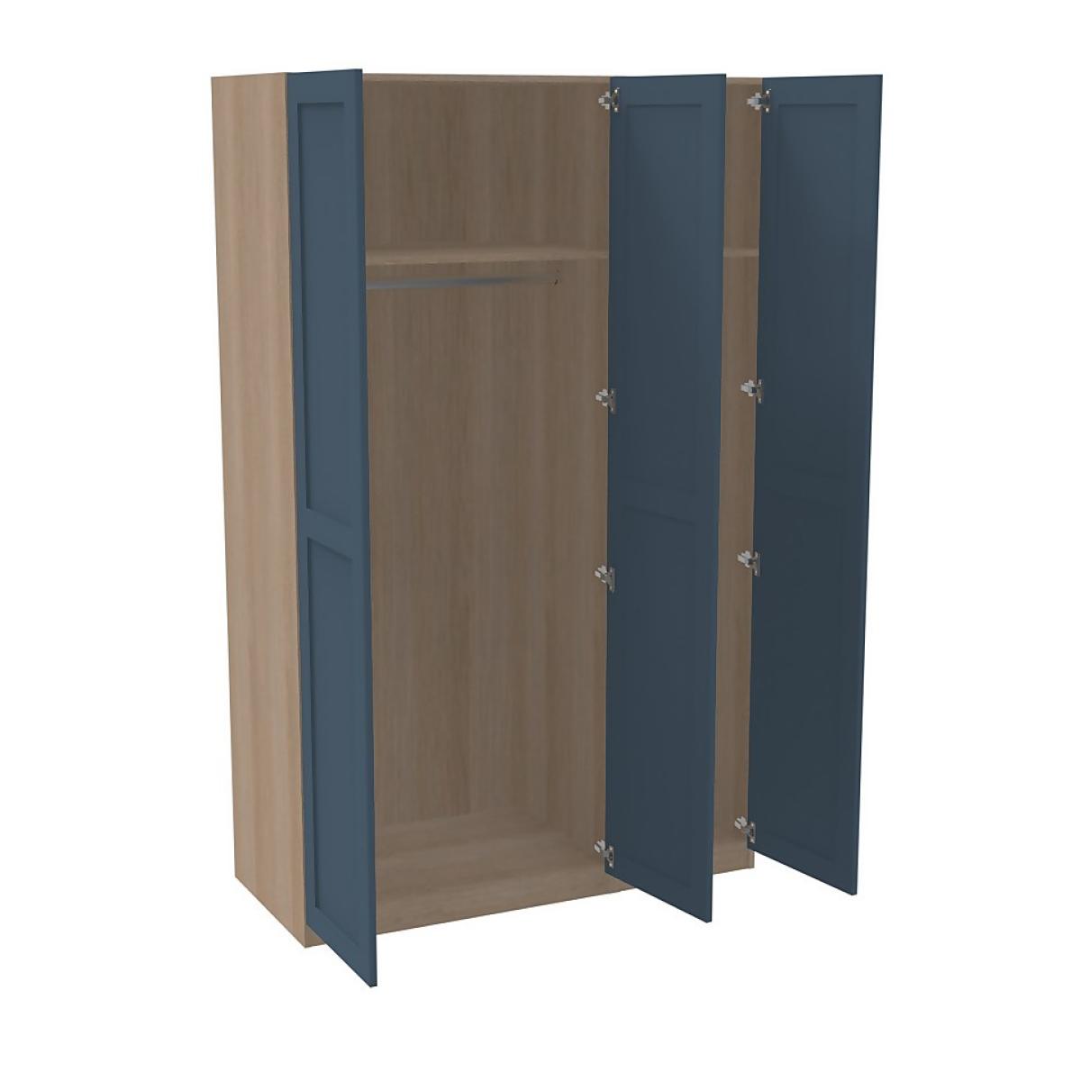 The House Beautiful range is exclusive to Homebase and offers a selection of different finishes and storage configurations to suit your needs. With a range of carcass colours and contrasting door designs, you can select the look to fit your bedroom aesthetic. This triple wardrobe (one double and one single) features an oak effect carcass and beautiful shaker doors finished in a luxurious matt navy blue. The wardrobe features premium soft close clip-on Blum hinges, two shelves and two hanging rails. You can customise your wardrobe with our additional
