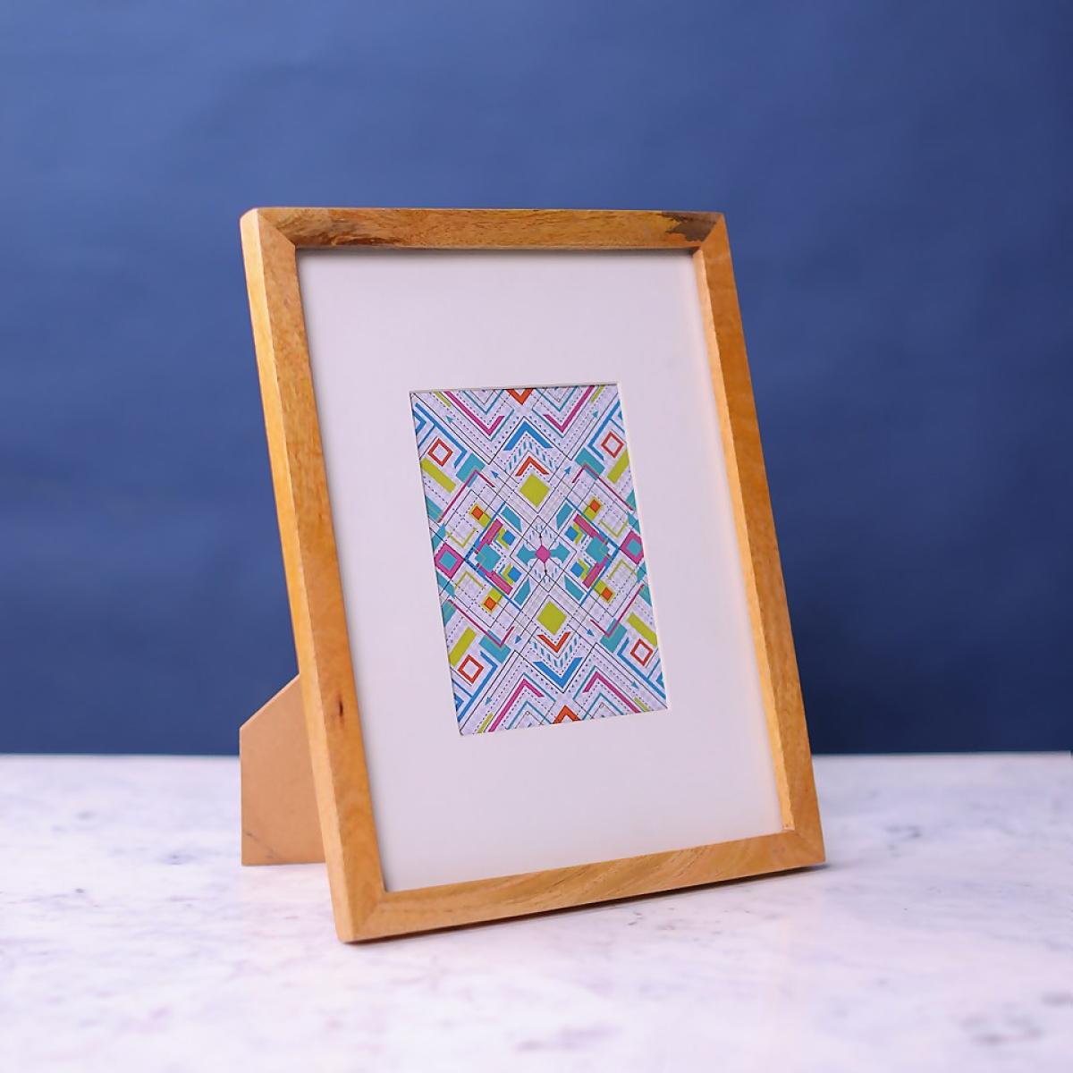 The frame is made of wood, it is handcrafted and has a decorative style frame with a creative design.