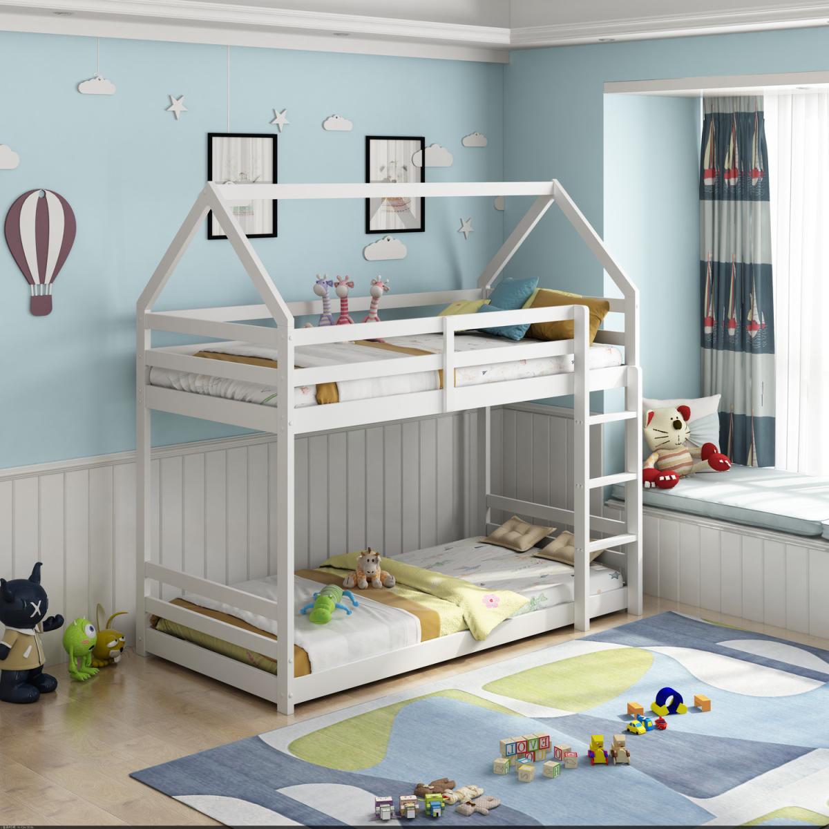 Introducing the enchanting Play House Bunk Bed, the ultimate haven for your child's dreams and imagination. This whimsical and functional piece of furniture is designed to elevate your children's bedroom experience to new heights of creativity and comfort. Crafted with utmost care and attention to detail, this bed is a splendid combination of functionality, aesthetics, and sturdiness. With a captivating design reminiscent of a charming playhouse, the Play House Bed is more than just a sleeping arrangement, it's a world of endless adventures waiting to be explored. Its exquisite white colour adds a touch of elegance and purity to any room, creating a delightful atmosphere that complements various decor styles. Whether it's a fairy tale adventure, a secret hideout, or a cozy reading nook, the Playhouse Bed invites your children to embark on imaginative journeys within the comfort of their own room. Bring home this exceptional piece of furniture, where dreams come to life, and watch as your child's creativity and joy flourish in their very own playhouse bed.