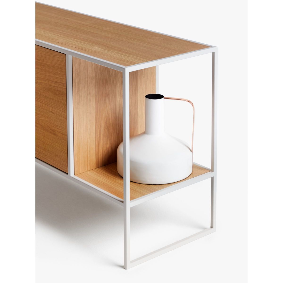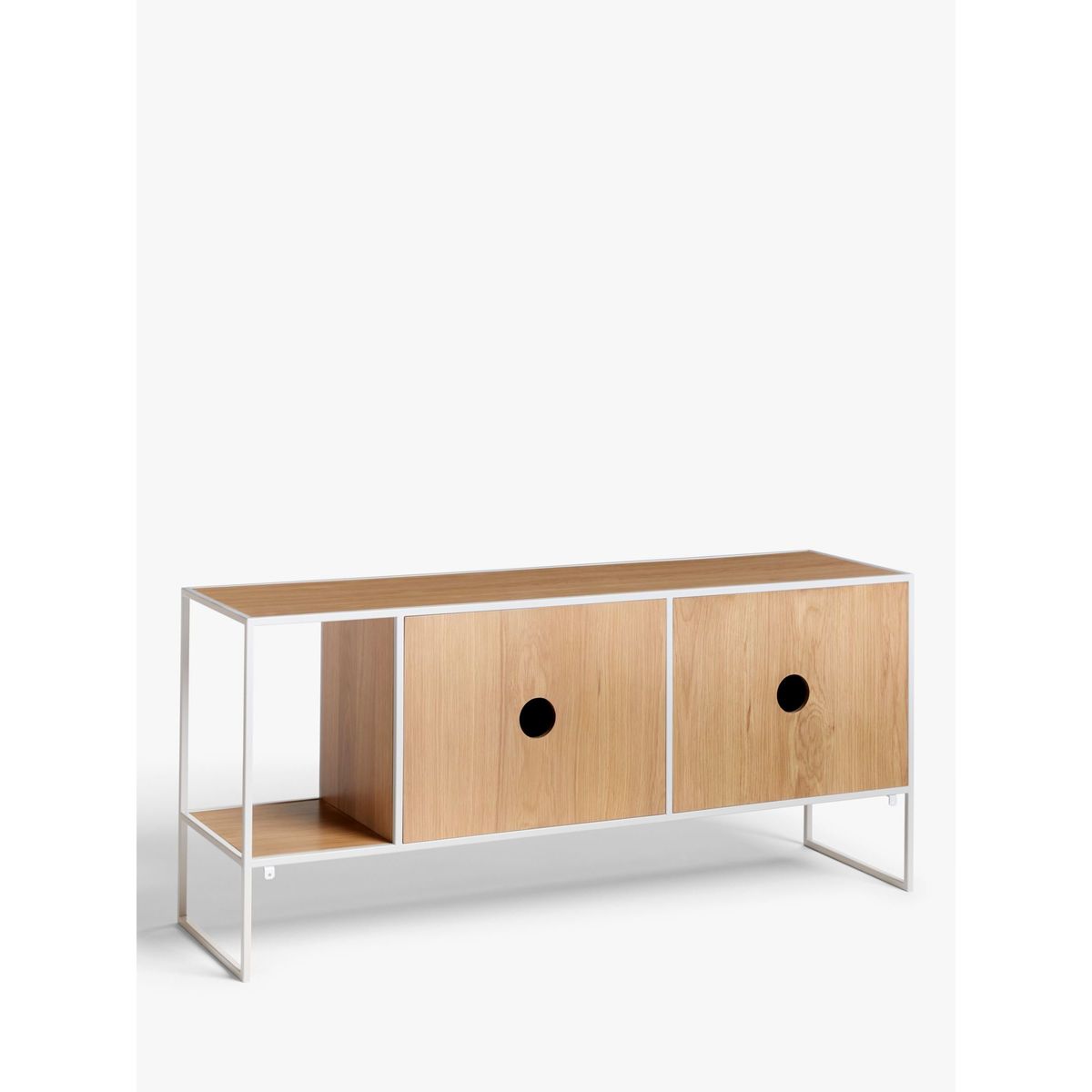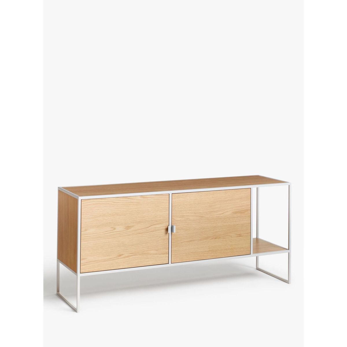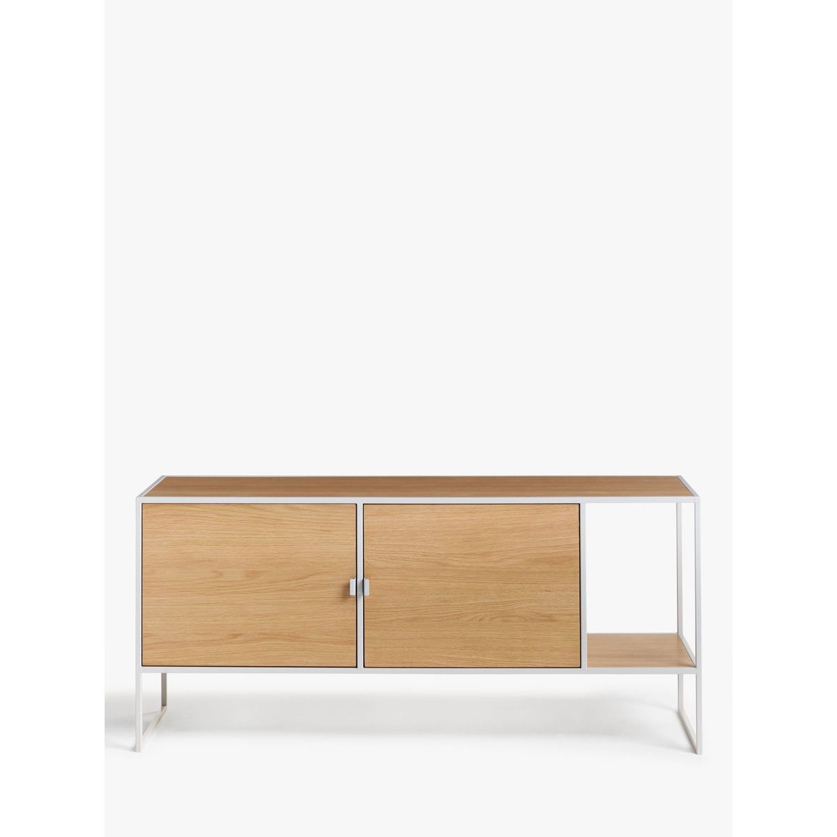 Our Dice range is designed to provide easy storage solutions for your contemporary home. Its tactile construction of wood veneer and metal has a subtle industrial quality, while each unit is characterised by its balanced, clean-lined profile. Its minimalist silhouette offers a modern way of organising items in your living room. With two cupboards and a side shelf, there's plenty of space to fit your technology and media. A handy cable tidy at the rear helps conceal unsightly wires. Our House by John Lewis range is designed to be at the heart of a contemporary home: well thought out, well made and surprisingly affordable. The feel is modern and uncluttered;useful products that you’ll love to live with. Want to see it first? You may want to see and get a feel for the furniture in one of our shops before ordering. If you do plan on doing this we recommend giving us a call on 03452 661805 as not all our ranges are on display in our shops. We'll be able to tell you where the range you'd like to view is on display.