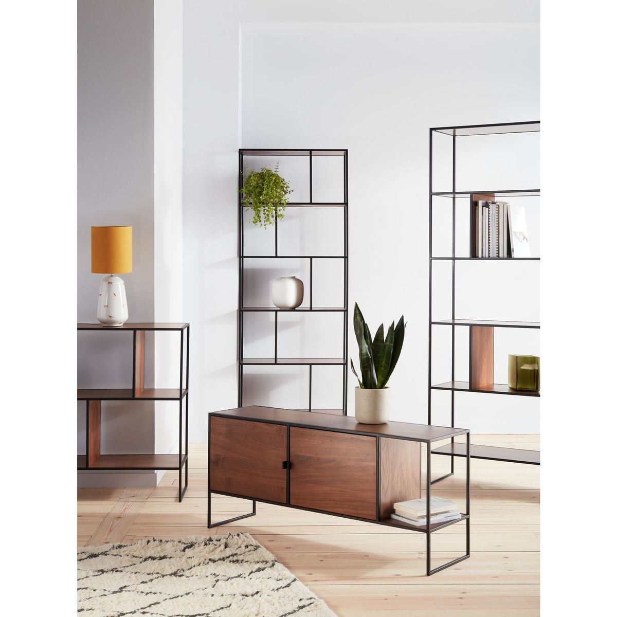 Our Dice range is designed to provide easy storage solutions for your contemporary home. Its tactile construction of wood veneer and metal has a subtle industrial quality, while each unit is characterised by its balanced, clean-lined profile. Its minimalist silhouette offers a modern way of organising items in your living room. With two cupboards and a side shelf, there's plenty of space to fit your technology and media. A handy cable tidy at the rear helps conceal unsightly wires. Our House by John Lewis range is designed to be at the heart of a contemporary home: well thought out, well made and surprisingly affordable. The feel is modern and uncluttered;useful products that you’ll love to live with. Want to see it first? You may want to see and get a feel for the furniture in one of our shops before ordering. If you do plan on doing this we recommend giving us a call on 03452 661805 as not all our ranges are on display in our shops. We'll be able to tell you where the range you'd like to view is on display.