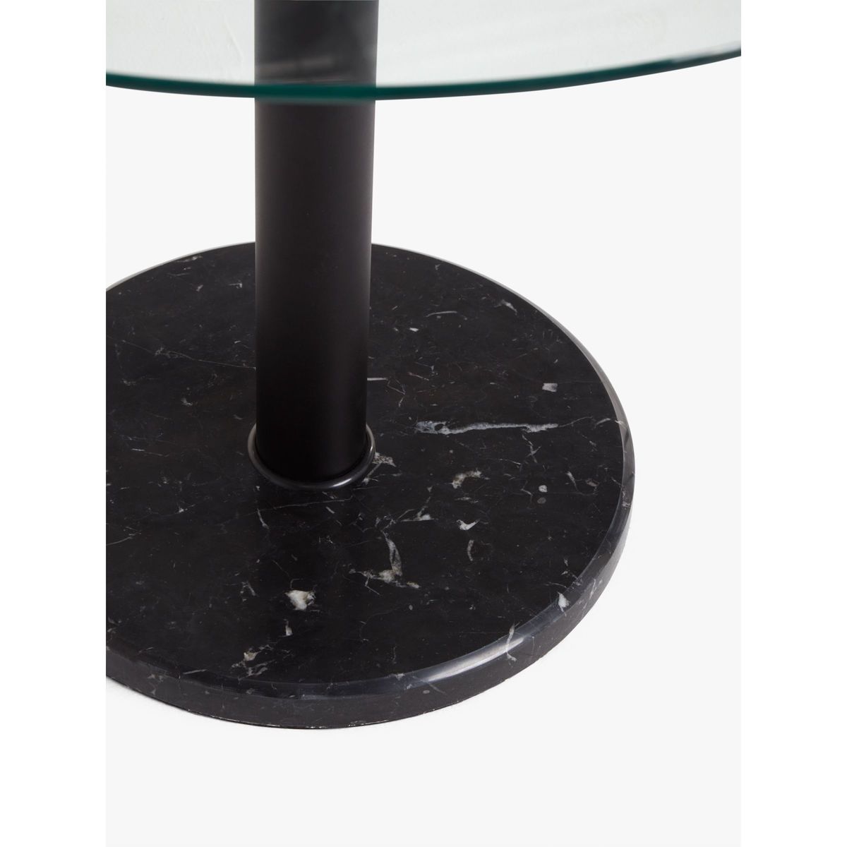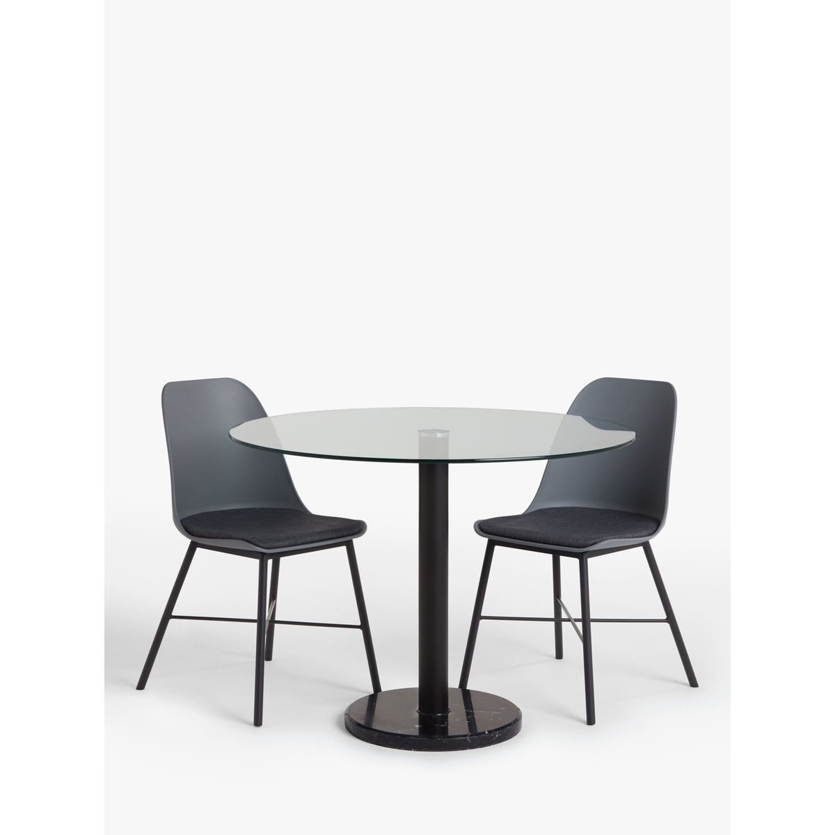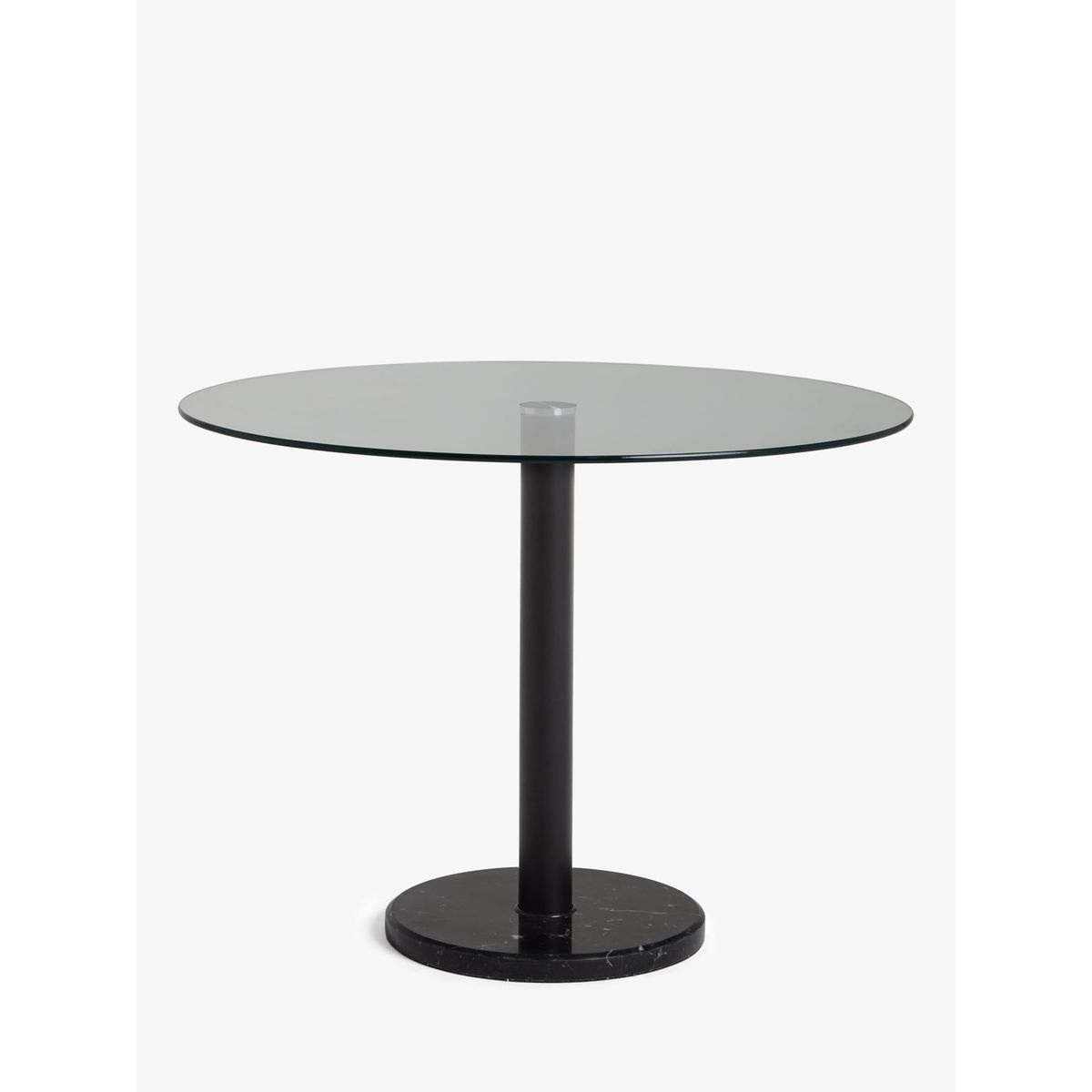 Minimalist and elegant, the Enzo dining table offers seating for up to 4 diners. Designed with a robust glass surface top, its rounded profile is ideal for smaller spaces. What's more, its black marble pedestal frame offers a sturdy base and trend-led contemporary accent. Coordinate with our Whistler dining chairs for a considered styling.;Our House by John Lewis range is designed to be at the heart of a contemporary home: well thought out, well made and surprisingly affordable. The feel is modern and uncluttered, useful products that you’ll love to live with.