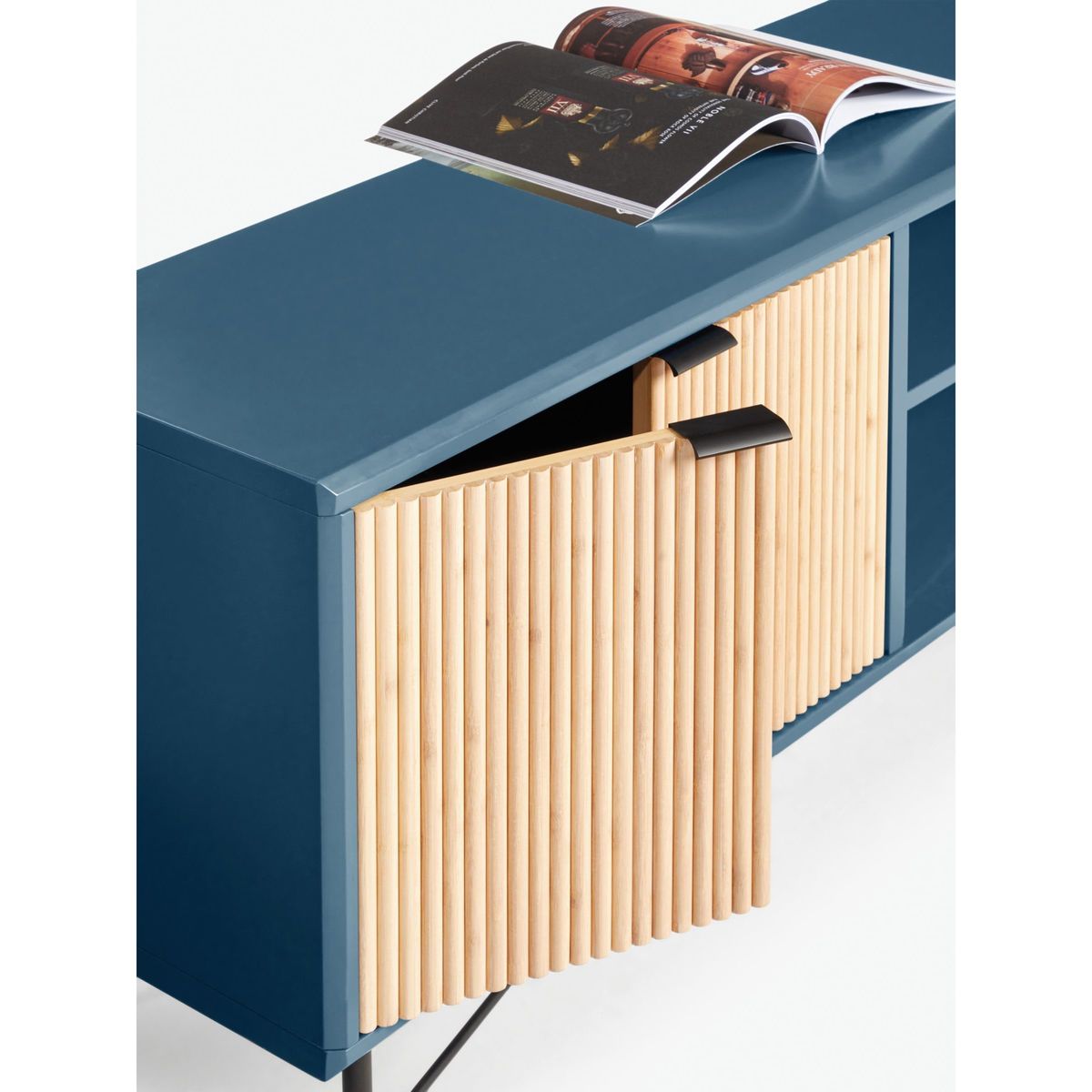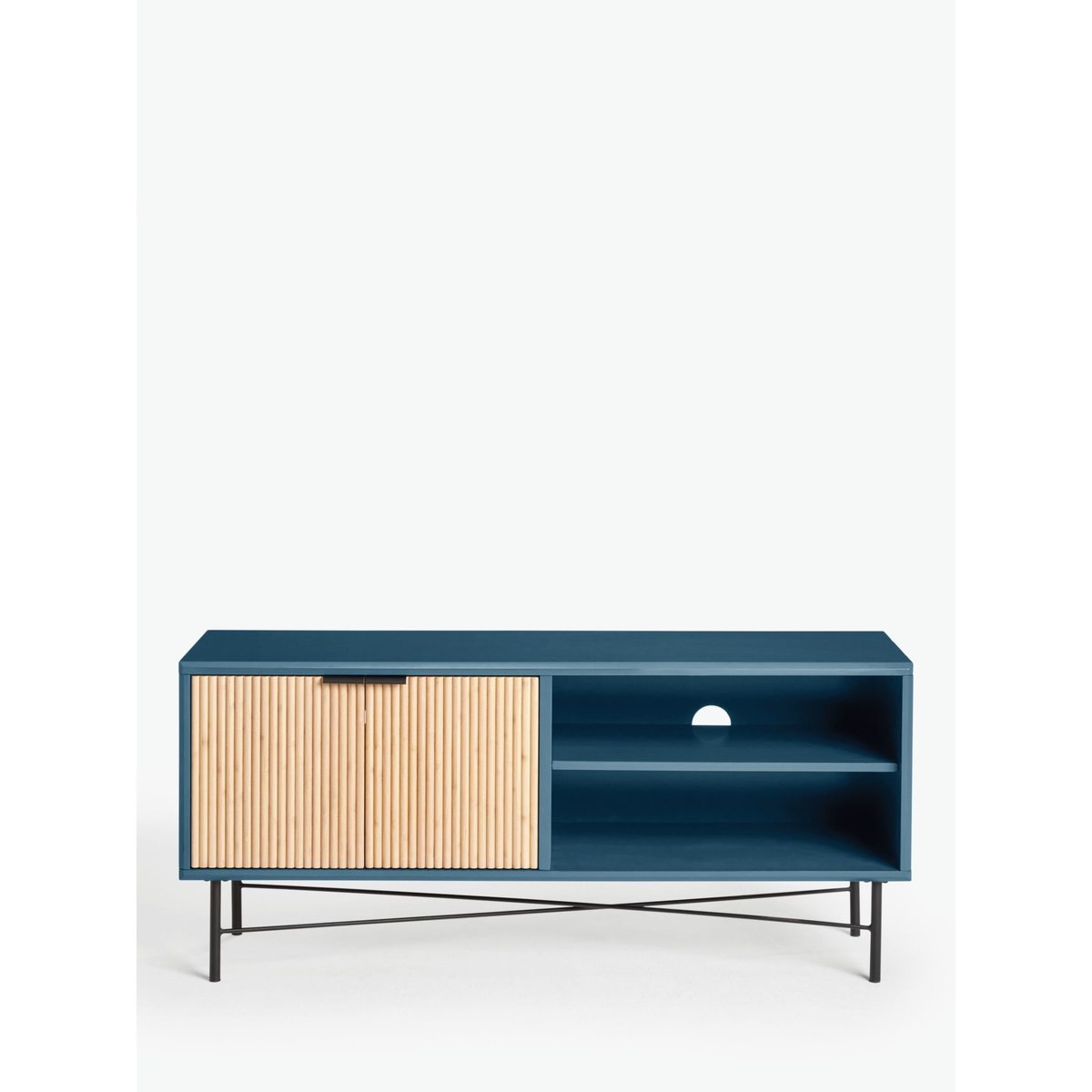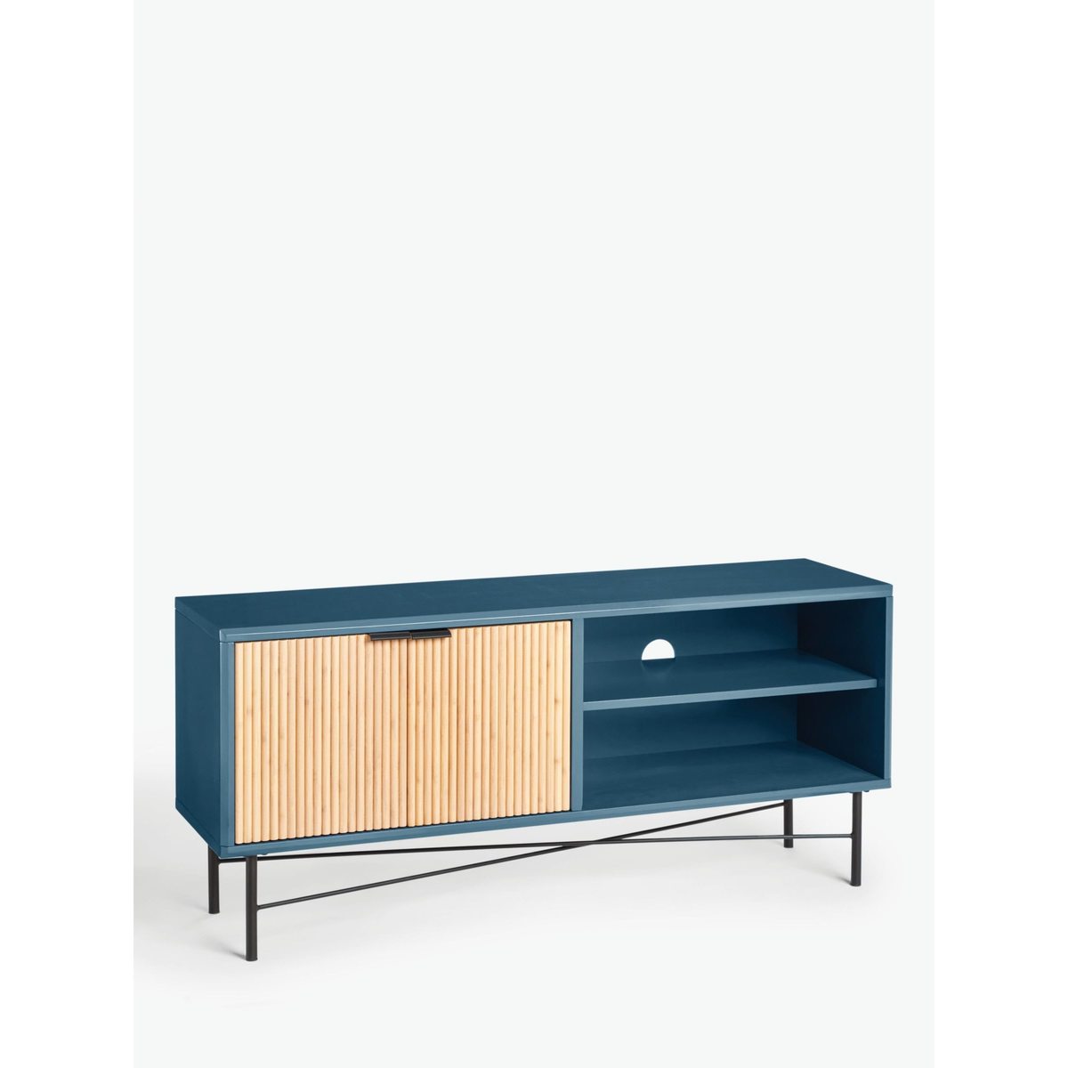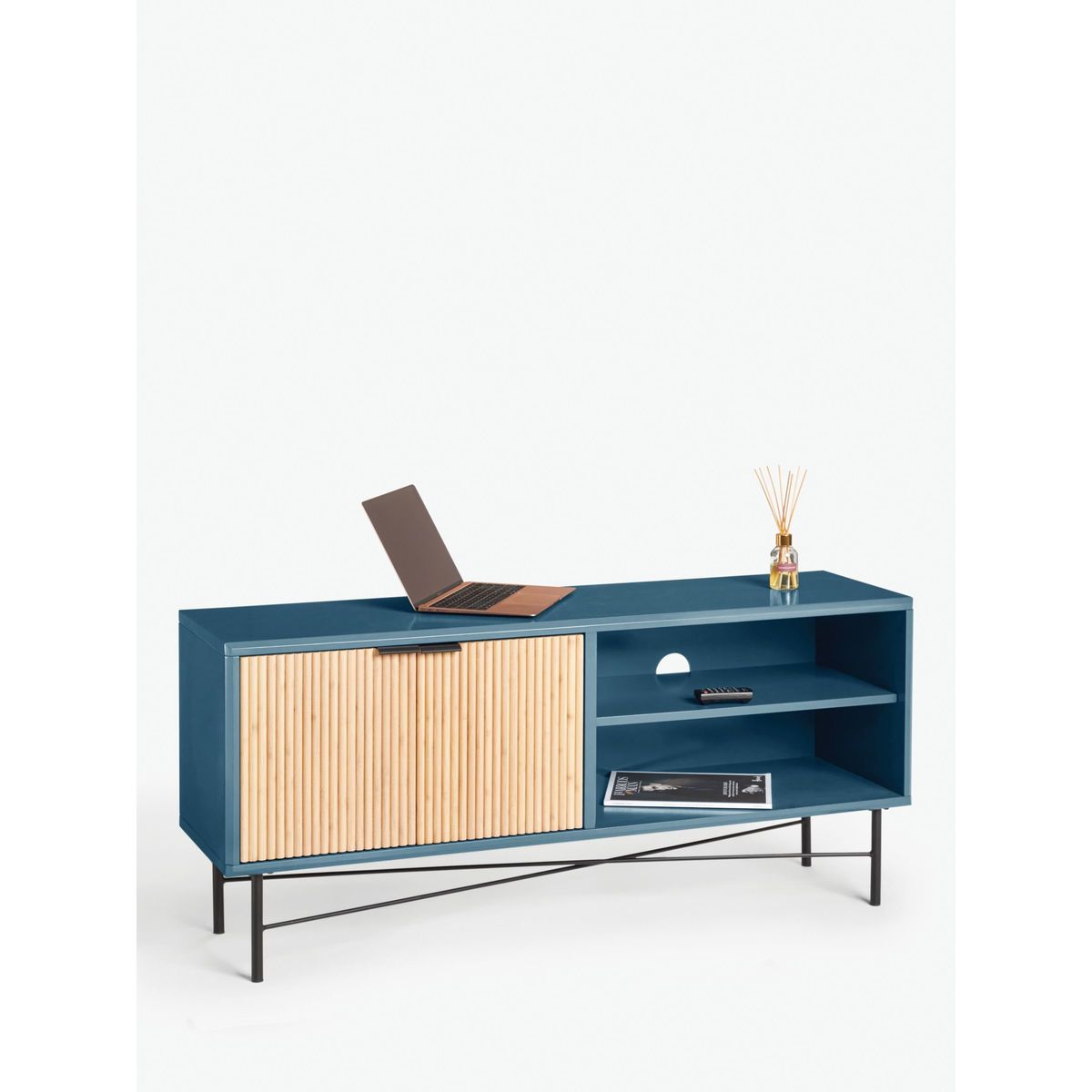 This practical TV stand is made from a combination of painted MDF and natural bamboo, which we've used to create the ridge feature on the cupboard doors. There's plenty of space for media consoles thanks to internal and exposed shelving and there's a cable hole at the back which helps to keep unsightly cables in order. It's supplied flat-packed, but don't worry, it's easy to assemble and will look the part in no time. Available in neutral or bold painted finishes so you can add an accent of colour to your space. More about bamboo Bamboo is the world's fastest growing plant, so it's considered to be one of the most renewable and readily available raw materials in the world. It's incredibly durable and lightweight and can be re-harvested every 3-5 years, in comparison to certain hardwoods that can only be harvested every 50 years. Want to see it first? You may want to see and get a feel for the furniture in one of our shops before ordering. We'll be able to tell you where the range you'd like to view is on display. With great prices and great design, our new brand offers style and quality for modern living today. Whatever you need, there's joy to be found in ANYDAY.