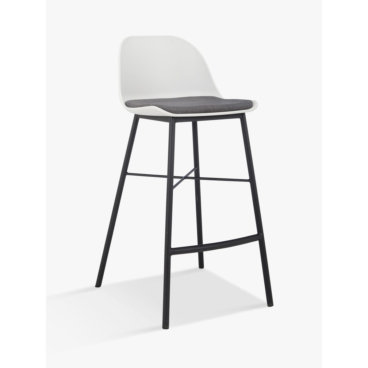 Our popular Whistler frame in the style of a bar stool. The seat is made from sturdy polypropylene with a well-padded, fixed fabric seat pad. Plus, thanks to the deep backrest, you no longer have to perch with bad posture at your breakfast bar, but can sit and dine in comfort. The welded metal frame provides reassuring durability and we've added plastic caps to the end of each leg to help prevent scratches or scuff marks on your floor. It's easy to assemble and ideal for busy households, as you can simply wipe each stool clean. Want to see it first? You may want to see and get a feel for the furniture in one of our shops before ordering. We'll be able to tell you where the range you'd like to view is on display. With great prices and great design, our new brand offers style and quality for modern living today. Whatever you need, there's joy to be found in ANYDAY.