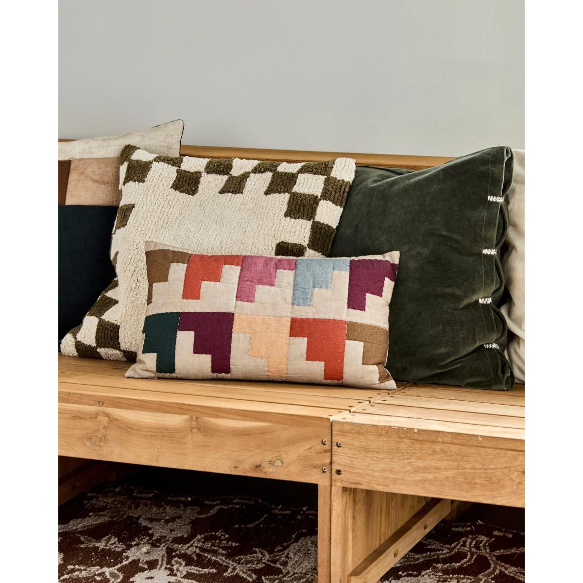 Block cushion cover 30x50 cm from House Doctor is an oblong cushion cover in multicoloured cotton with a graphic pattern and embroidered details. The cushion cover gives the sofa or bed a playful lift and works well combined with plain cushions for a personal, cosy home.