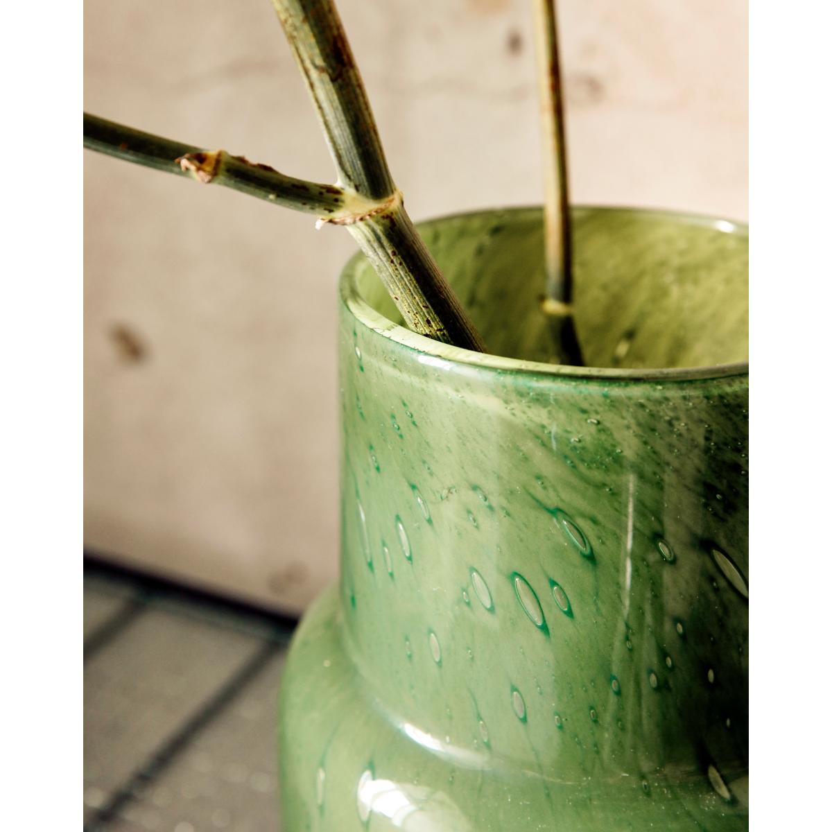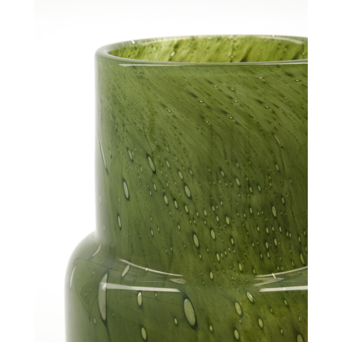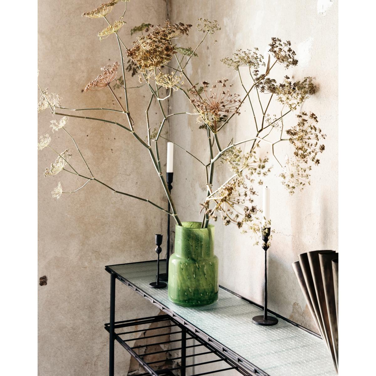 I love this little green vase for its versatile, understated design and deep colour that can anchor both modern and more traditional interiors. It works particularly well in minimalist schemes or Scandinavian-inspired spaces where its clean lines and rich hue can stand out without overpowering. For styling tips, try pairing it with fresh or dried foliage, or leave it elegant and empty as a standalone sculptural piece. It’s also perfect for layering on a shelf or table with other vases of varying heights and textures to add visual interest. Due to its compact size, it’s ideal for small displays or as a bedside table accent, making it a practical yet stylish addition to many rooms.