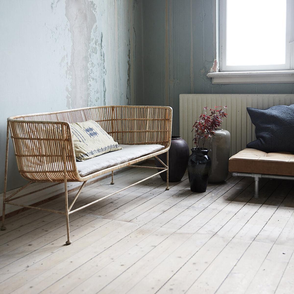 Get that bohemian look with this Cuun Sofa from House Doctor. Weaved using rattan and featuring an iron frame, this simple and modern design will complement any interior. Available in two colours. Please note, the product is made from natural materials which means the colour may vary. Key features: * Material: rattan, iron * Dimensions: L140xW65.5xH70cm * Natural colour * Curved design * Due to the materials used the finish may vary * Clean with a damp cloth