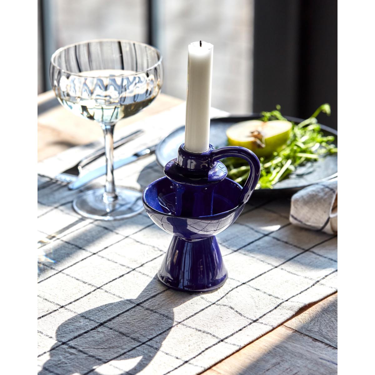 I love this little blue candle holder because of its bold, contemporary shape and vibrant colour, which can add a pop of visual interest to a minimalist or Scandinavian-inspired space. Its compact size makes it versatile for styling on shelves, side tables, or as part of a centrepiece. Pair it with neutral tones and simple decor for a modern look, or mix it with other colourful accessories for a more eclectic feel. To enhance its impact, consider using it with a tall taper or pillar candle and place it where its shape can be appreciated-like a mantel or a windowsill. This piece is great for bringing colour and character to both everyday settings and special occasions.
