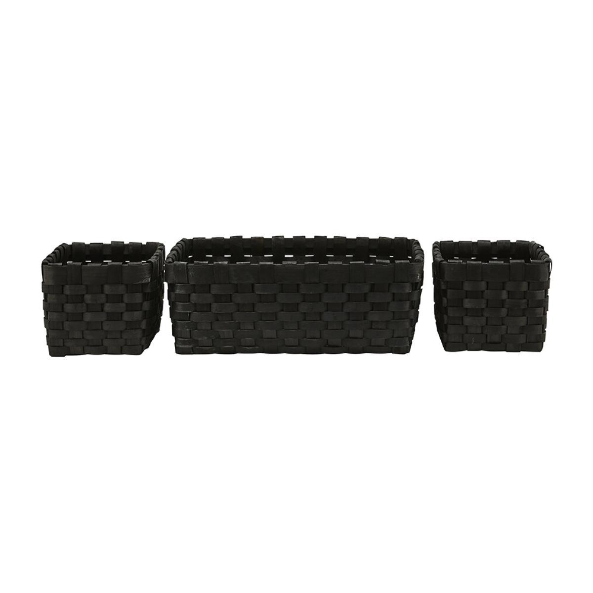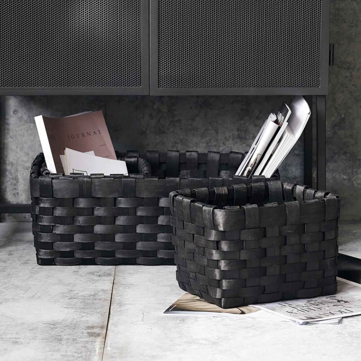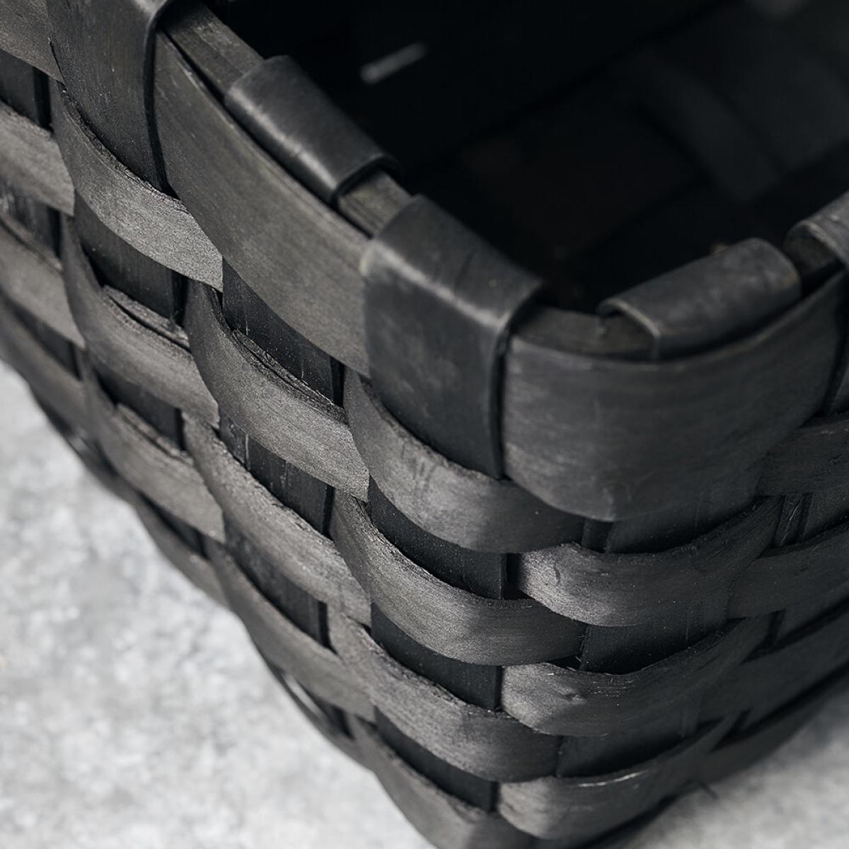 Cut the clutter with these Edition baskets from House Doctor. Made from wood chip, these weaved baskets have been finished in chic black colour. Key features: * Material: wood chip * Dimensions: * Small: H20xW29xD34cm * Large: H20xW55xD29cm * Black colour * Weaved design