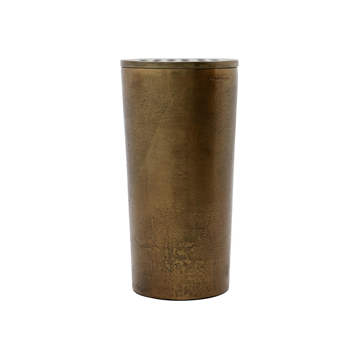 I love this vase because its antique brass finish adds a timeless, slightly industrial touch that works beautifully in both modern and vintage-inspired interiors. It's versatile enough to sit as a statement piece on a console or as part of a curated table arrangement. For styling, I suggest pairing it with neutral-toned dried or fresh flowers to highlight its warm metallic sheen, or using it as a standalone sculptural object. It’s especially effective in spaces where you want to introduce subtle metallic accents without overpowering the overall aesthetic. Practical tip: keep it clean with a soft cloth to maintain its patina and character over time.