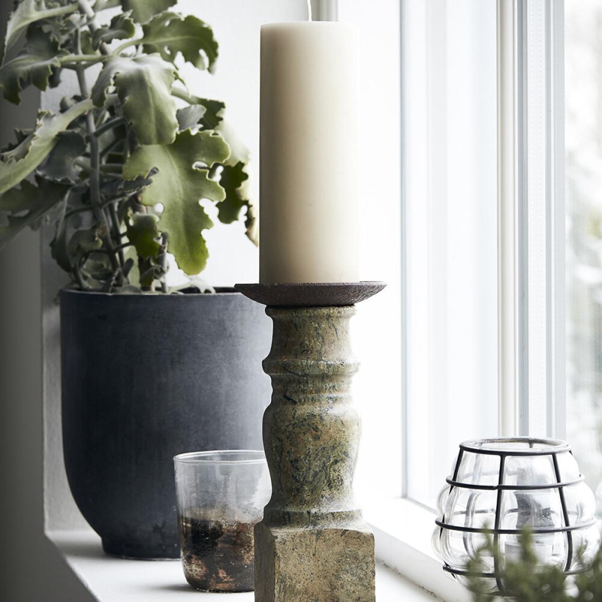 Set the scene in style with this Gima candle stand from House Doctor. Handmade from green marble, it is topped with an iron candle holder for a beautiful, antique effect. Please note, due to its handmade nature each piece is unique.