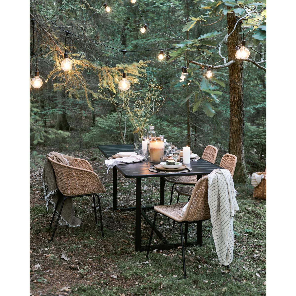 I love this black dining table for its minimalistic yet sturdy design, making it versatile enough to suit a range of interiors. It works particularly well in modern, industrial, or contemporary spaces, where its sleek black finish adds a sophisticated touch. Practical styling tips include pairing it with neutral or monochrome chairs to keep the look clean, or adding textured textiles like woven placemats and cushions to soften the overall feel. Its size is ideal for smaller to medium-sized dining areas, offering ample space without overwhelming the room. Keeping accessories simple will let the table’s design stand out and ensure maintaining a stylish, clutter-free setting.