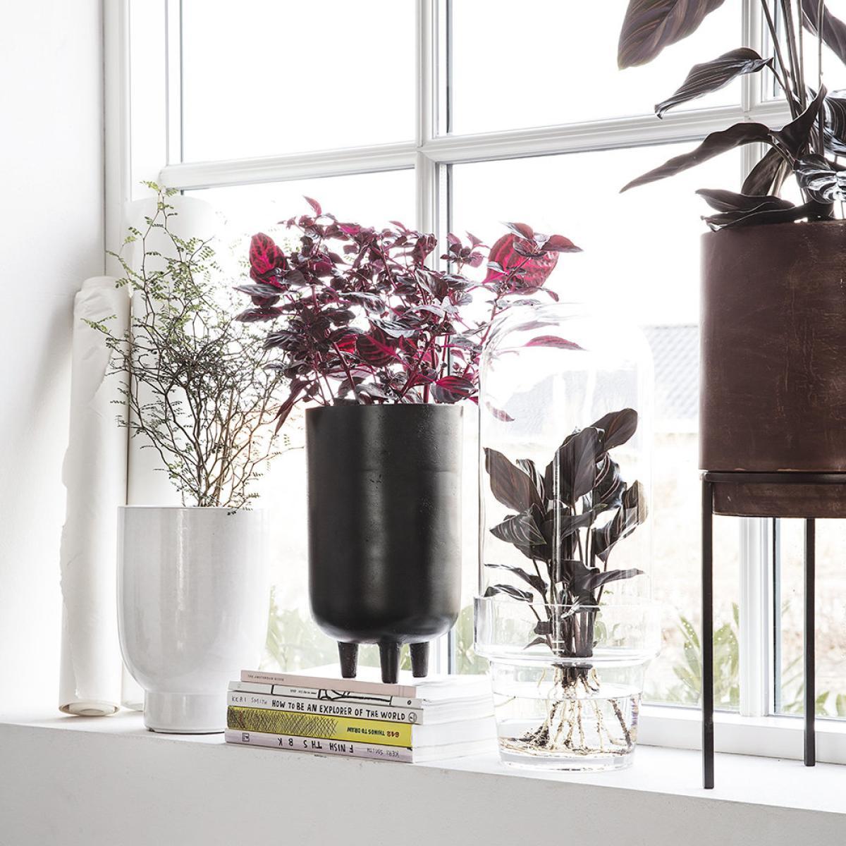 Create a unique houseplant display with this Jang planter from House Doctor. Made from 100% aluminium, this planter is simple in design features feet to give it an elevated look. Oxidised black, this planter will let your plants do all the talking.