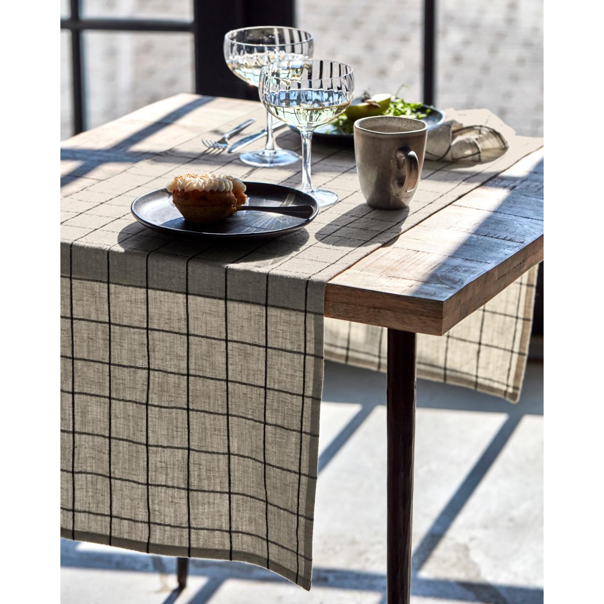 The house doctor join runner is a versatile piece that works well in both modern and traditional interiors, thanks to its minimalistic black and off-white check pattern. I love it for adding a touch of understated sophistication to dining tables, kitchen islands, or even hallway consoles. Its neutral palette allows it to be styled with bold colours or kept simple for a clean, Scandinavian vibe. Practical tips include pairing it with natural wood or matte black accessories, and layering with placemats or coasters for a curated look. It’s a great way to introduce pattern without overwhelming the space, making it an easy partial update for everyday use or special occasions.