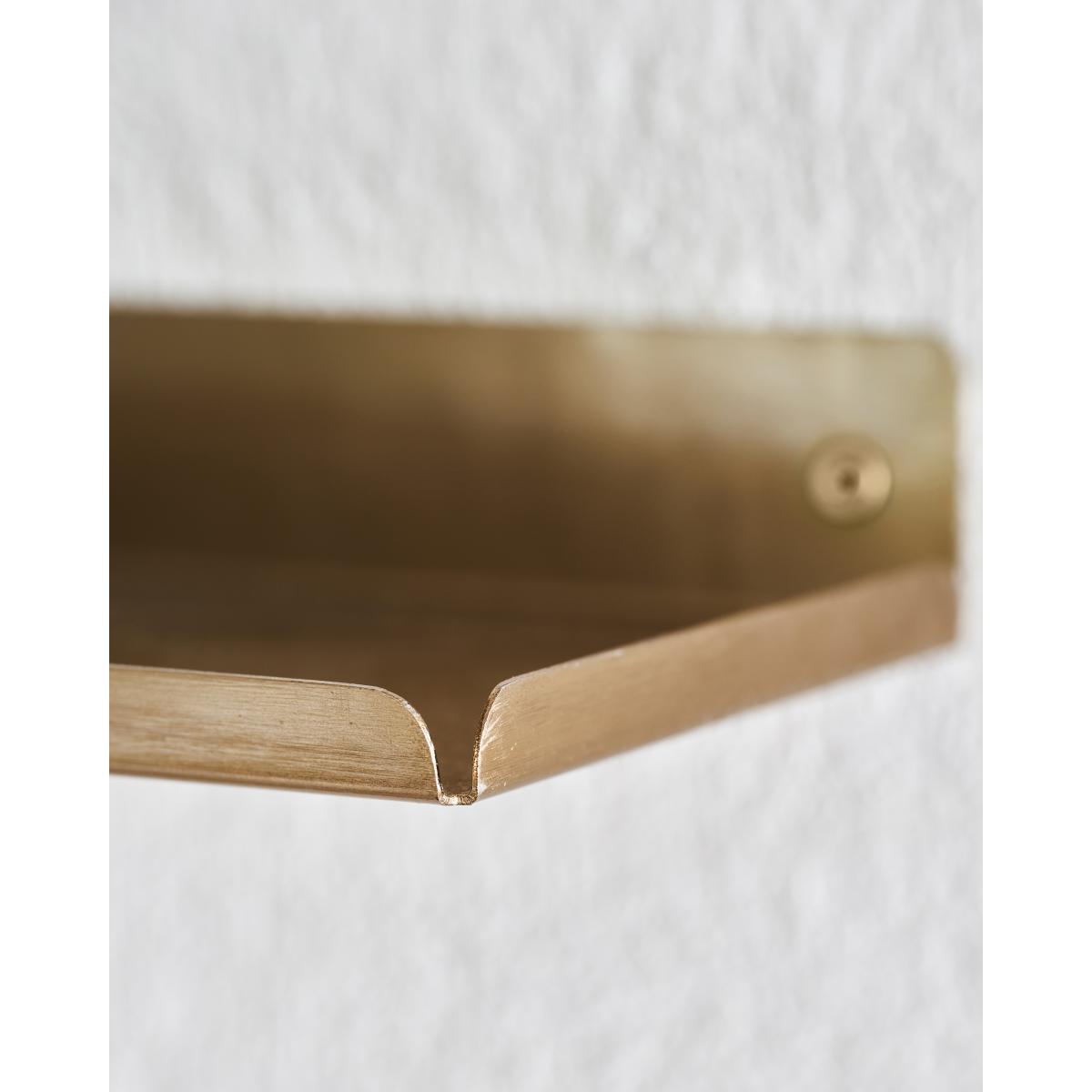 I love this brass ledge shelf for its sleek, contemporary look and versatility. It works exceptionally well in minimalist and modern interiors, adding warmth and a touch of sophistication without overwhelming the space. It's perfect for displaying small decorative items, plants, or books, and can be styled layered with other shelving for a dynamic effect. For practical tips, consider balancing metallics with textures like ceramics or wood, and keep items arranged in varying heights to create visual interest. Its slim profile makes it an excellent choice for narrow spaces or as a complement to larger shelving units.