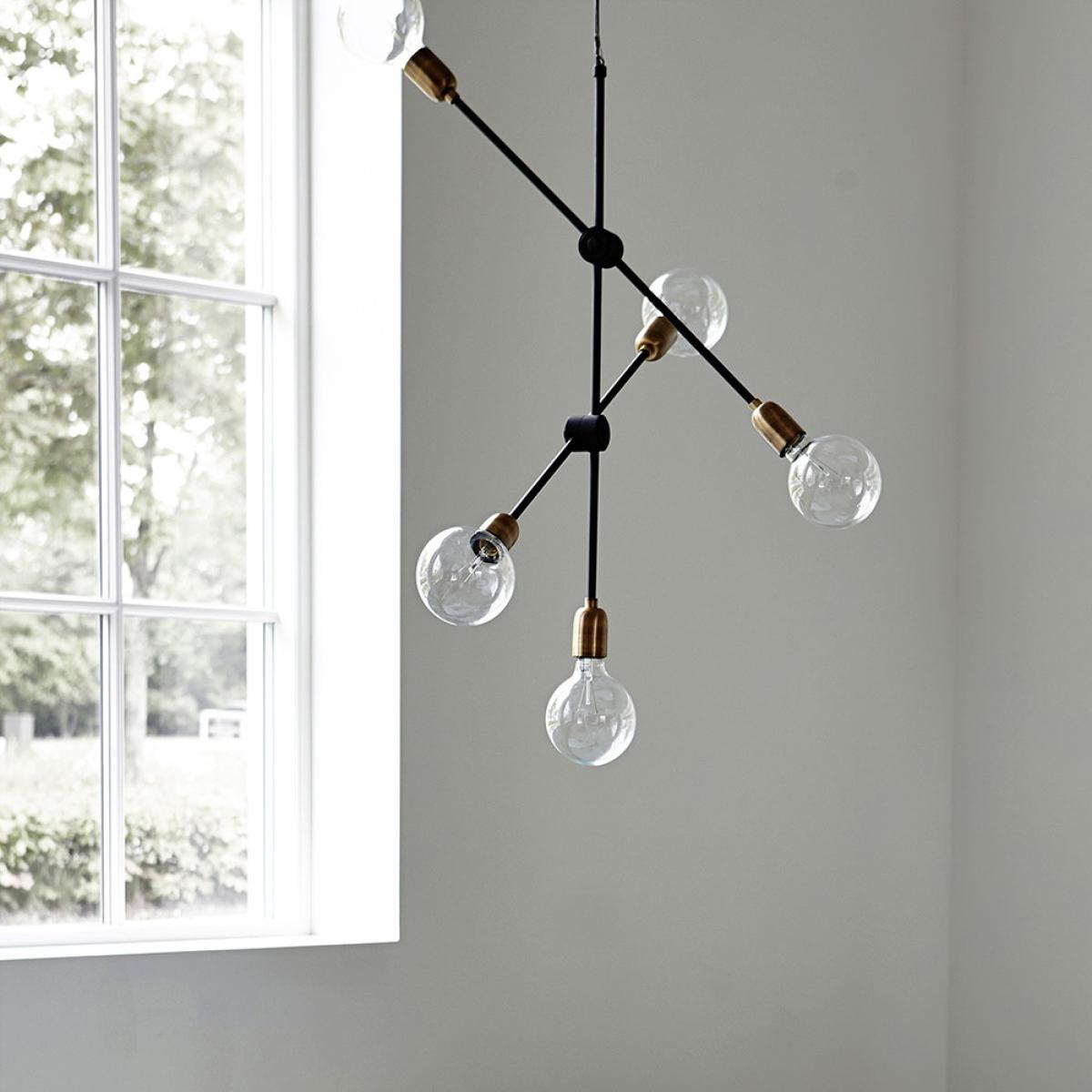 Make a statement with this Molecular Ceiling Pendant from House Doctor. Made from iron with a black coating, it features a unique molecular design with chic brass detailing. A fabulous focal point for the home, it requires 5 bulbs which are not included.