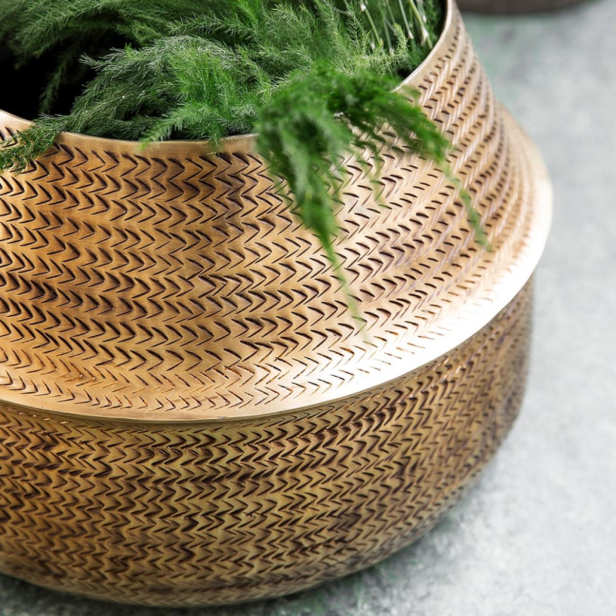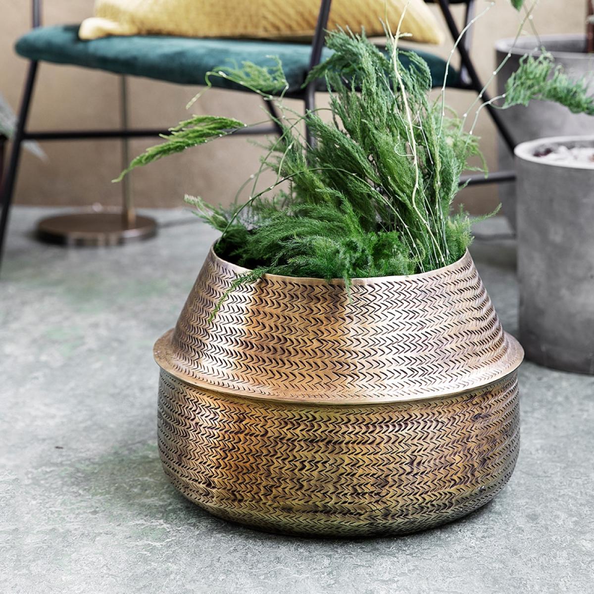 I love the rustling brass finish of the house doctor rattan planter - it adds a sophisticated, tactile element that elevates any interior. It works particularly well in contemporary or eclectic spaces, where its metallic sheen provides a lovely contrast to natural greenery. For styling, try planting tall, airy ferns or trailing ivies for a relaxed, organic look. Position the pot on a neutral surface or a statement tray to anchor your arrangement, and consider grouping it with other brass or textured accessories to create a cohesive vignette. Its durable yet elegant design makes it versatile for both indoor and covered outdoor settings.