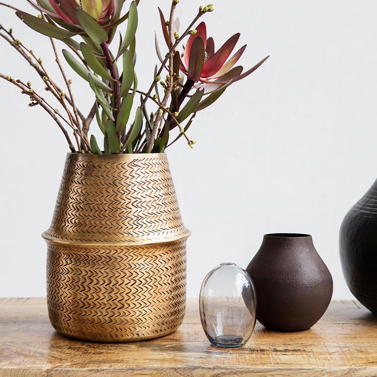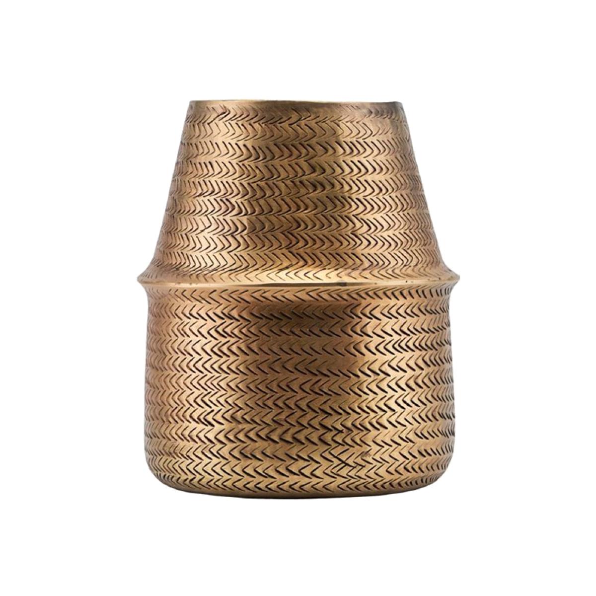 Whether left empty or filled with your favourite blooms, the Rattan Brass Vase from House Doctor will look stunning styled up on those boring kitchen shelves! Crafted from aluminium with a rustic brass finish and textured design, it will be the perfect spot for some dried flowers or maybe a cheeky twig or two. Style up on your coffee table for a talking point or perhaps style it up on some open shelving with other vases and candlesticks to create a beautifully curated display!.