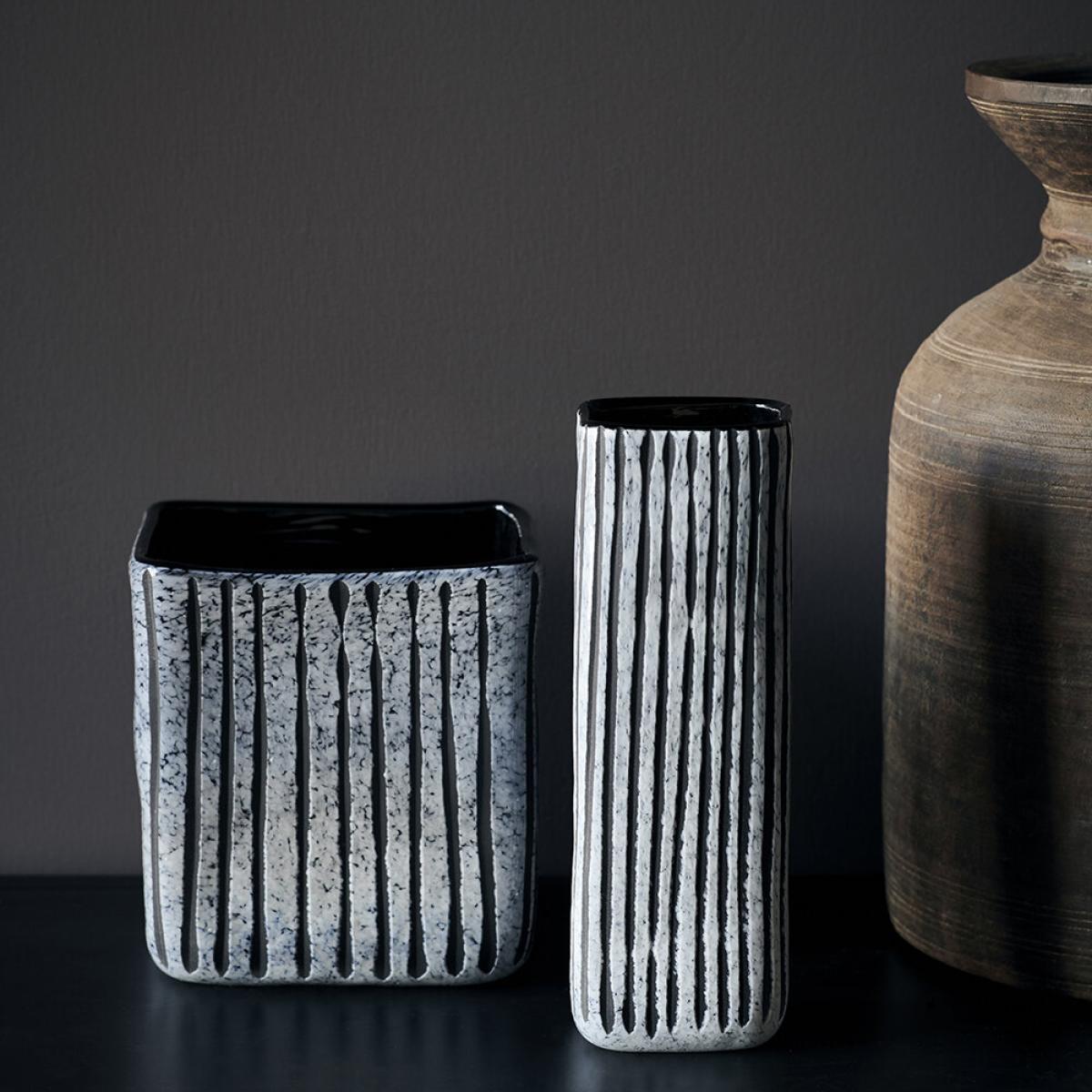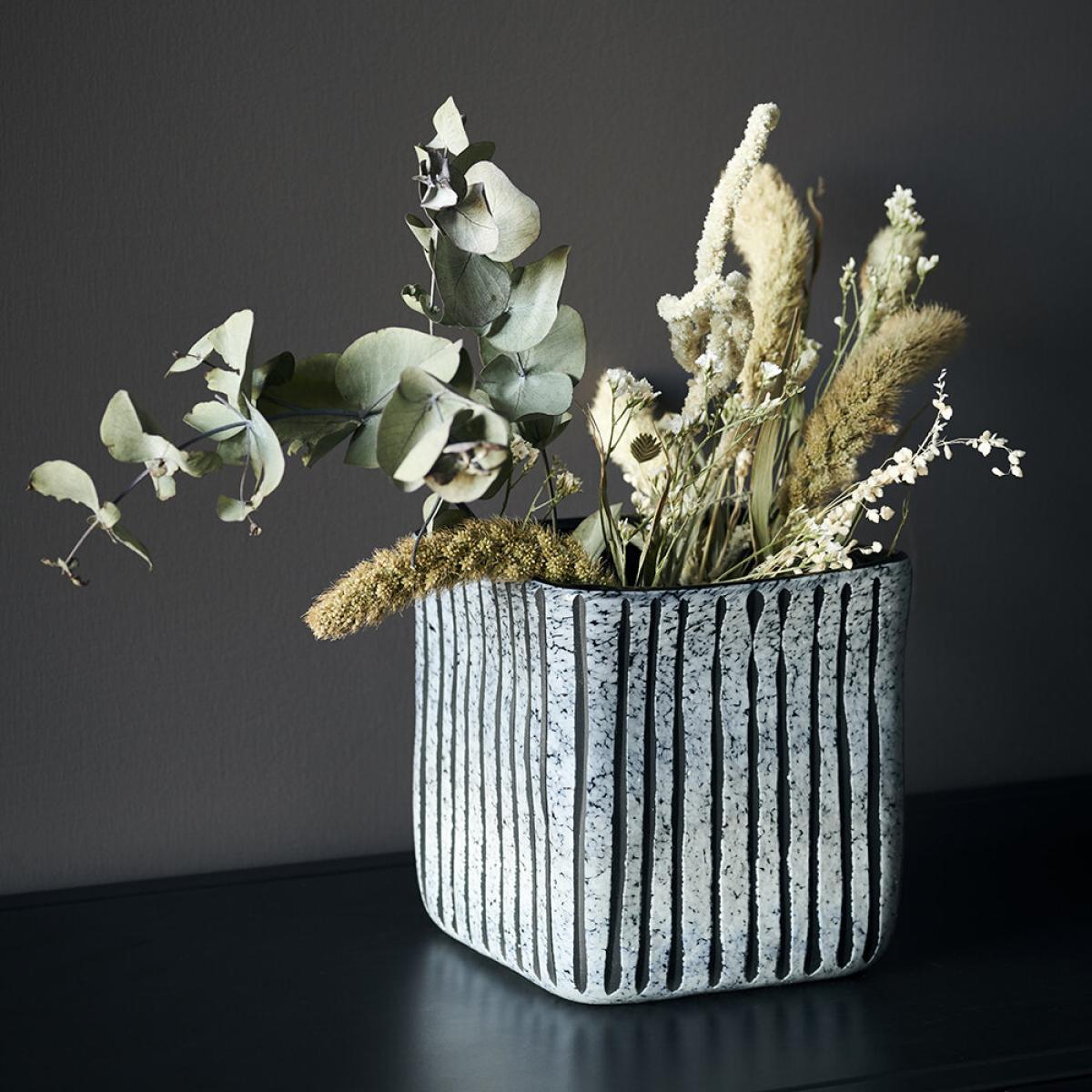 Give your favourite plants somewhere stylish to live in this Surat planter from House Doctor. Made from glass, this planter features monochrome stripes and a unique marbleised glaze.
