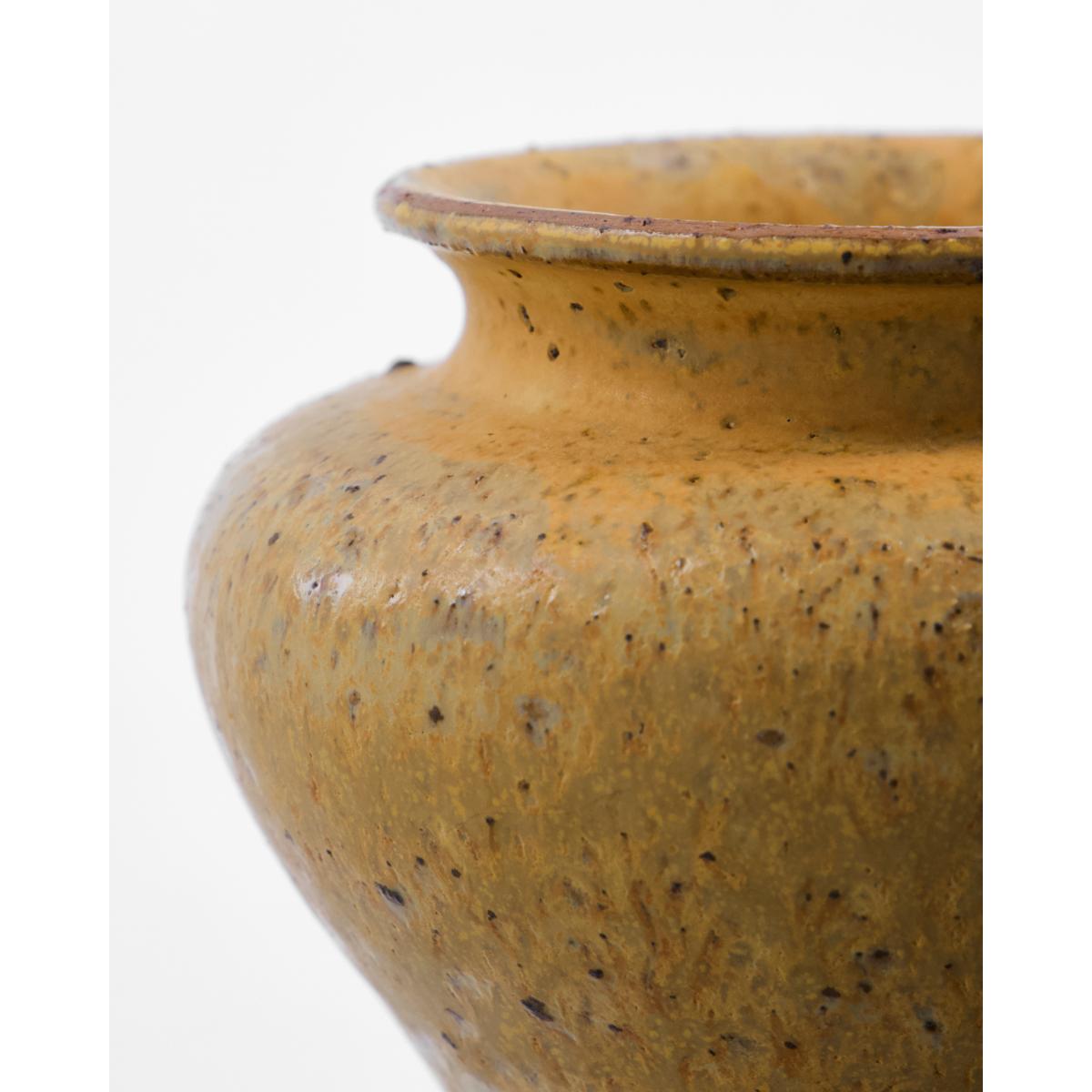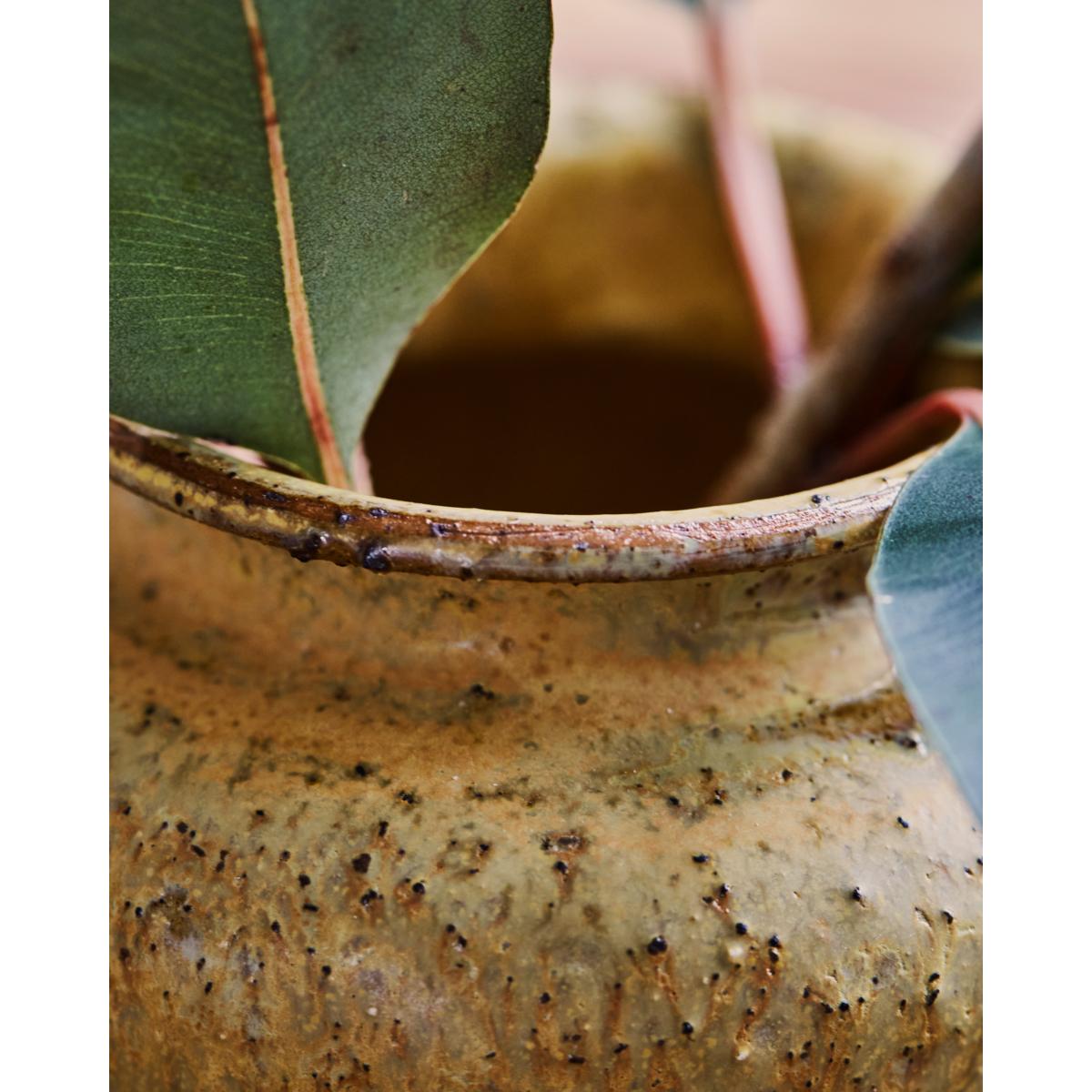 I love this mustard yellow vessel for its rustic charm and versatility. Its neutral yet warm colour makes it a great addition to both modern and more traditional interiors, especially when paired with natural materials like wood and linen. It works beautifully as a standalone statement piece or filled with fresh or dried flowers for a pop of colour on a side table or shelf. Practical styling tips include layering it with other textured objects or using it to anchor a tabletop arrangement. Because of its earthy tone, it can seamlessly blend into a variety of colour schemes, adding warmth and visual interest without overpowering the space.