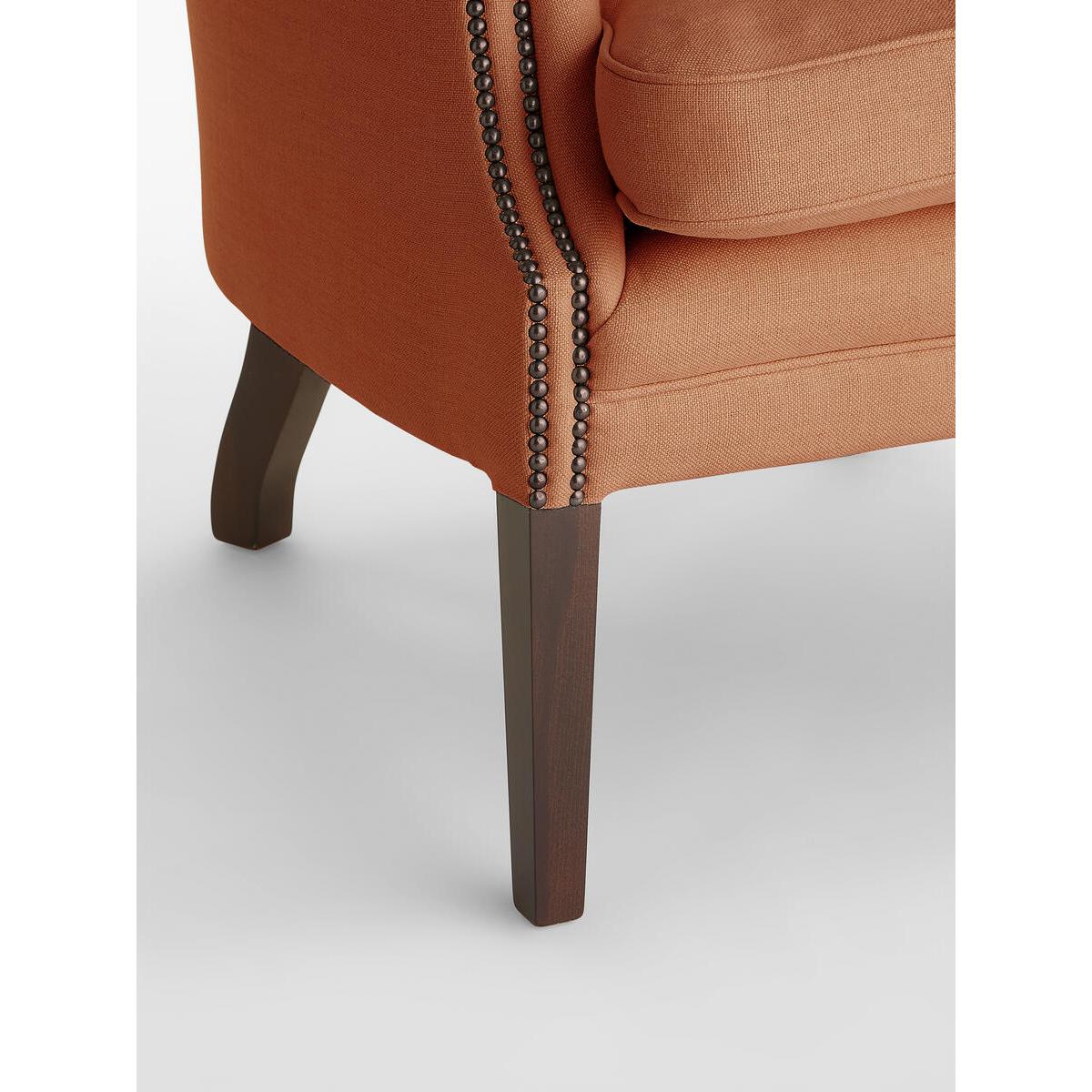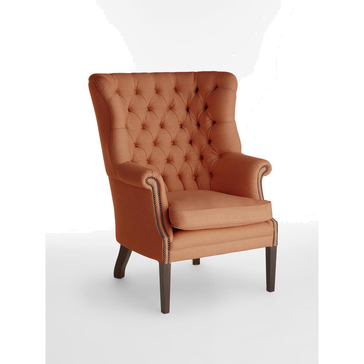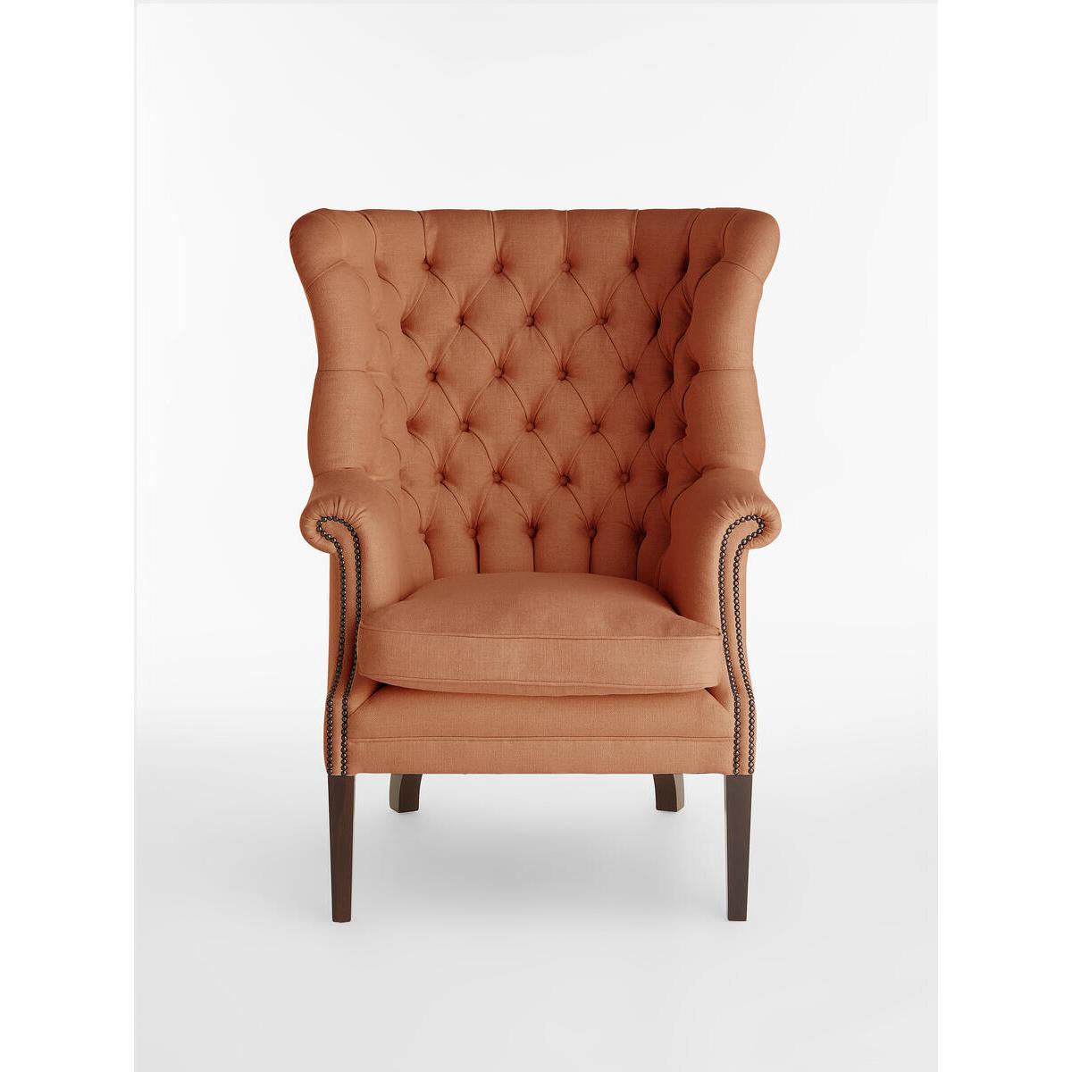The wide side wings of our Porter chair envelop the sitter,making it ideal for when you want to be on your own or feel extracosy. Hand crafted in England and upholstered in tactile purelinen, it's inspired by traditional porter chairs seen around the Houses from Babington to Chicago and New York. Upright porter chair with linen upholstery. Wide side wings. Deep buttoned detailing. Hand crafted in England. Dark stained timber feet. Inspired by chairs at Soho House Chicago and Babington House.