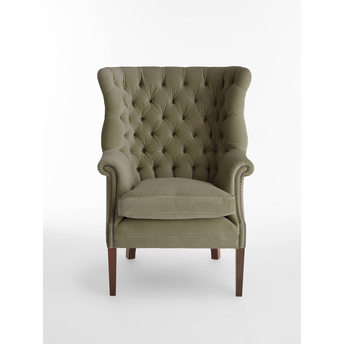 The wide side wings of our Porter chair envelop the sitter,making it ideal for when you want to be on your own or feel extracosy. Hand crafted in England and upholstered in tactile purelinen, it's inspired by traditional porter chairs seen around the Houses from Babington to Chicago and New York. Upright porter chair with velvet upholstery. Wide side wings. Deep buttoned detailing. Hand crafted in England. Dark stained timber feet. Inspired by chairs at Soho House Chicago and Babington House.