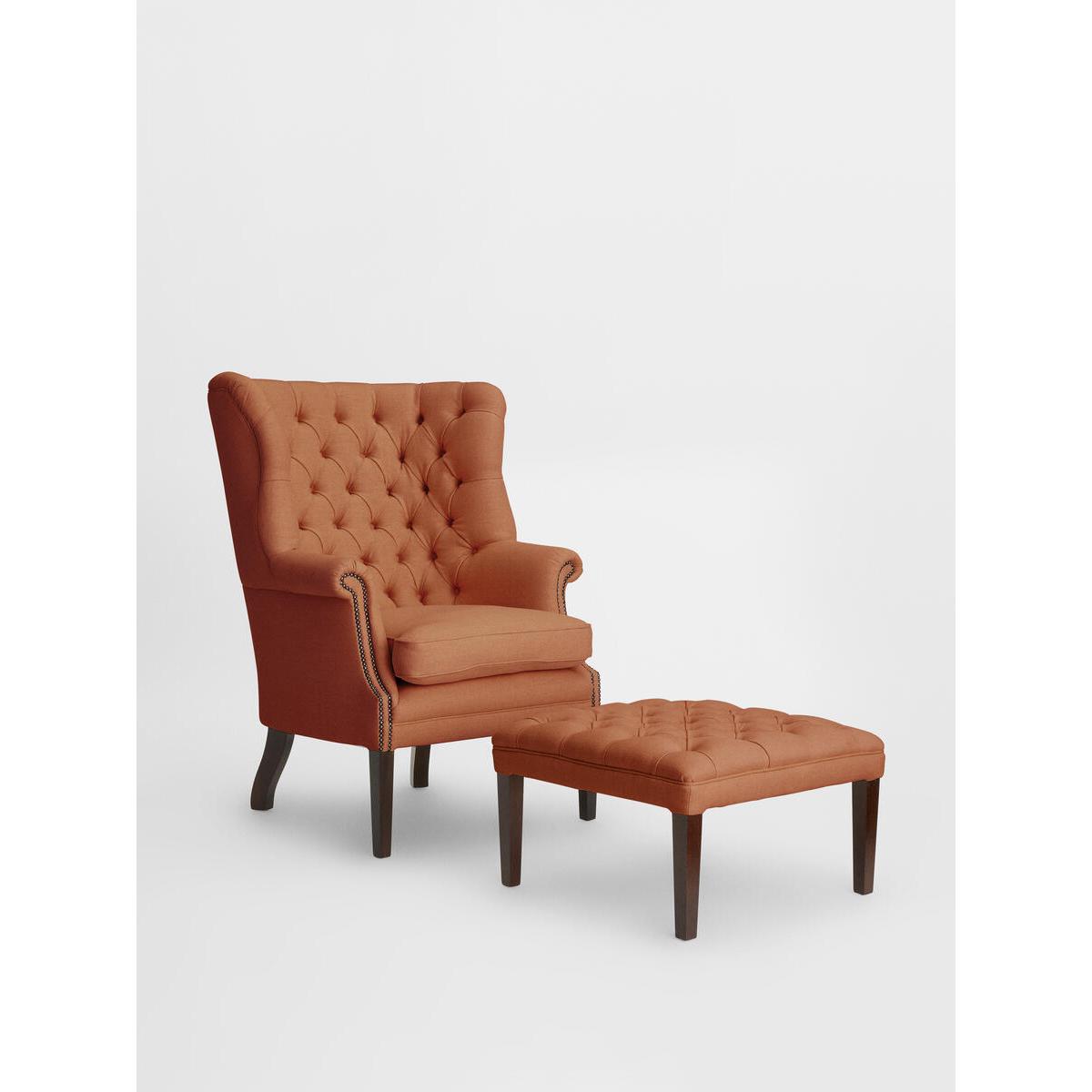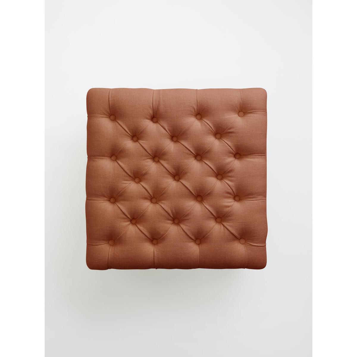 Designed to pair with our House Porter chair, this linen ottomanis handcrafted in England and upholstered in pure linen with deepbuttoned detailing. It's inspired by traditional Porter chairs seenaround the Houses, from Babington to Chicago and New York. Linen ottoman. Deep buttoned detailing. Handcrafted in England. Dark stained timber feet. Inspired by chairs at Soho House Chicago and Babington House.