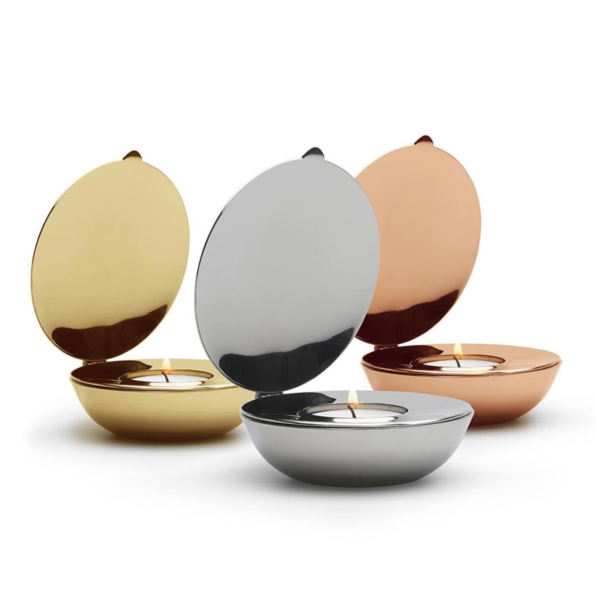 I love this little holder for its sleek, modern aesthetic and versatile appeal. Its reflective, gold-toned finish makes it an excellent choice for adding a touch of luxury and warmth to both minimalistic and eclectic interiors. It works particularly well in contemporary or Scandinavian-style spaces, where its clean lines can be a statement piece or blended into a curated natural look. For styling tips, consider placing it on a mantel, side table, or layered with other textured accessories for added visual interest. It’s perfect for creating intimate table settings or adding a cosy glow to shelving displays, and its compact size makes it practical for both everyday use and special occasions.