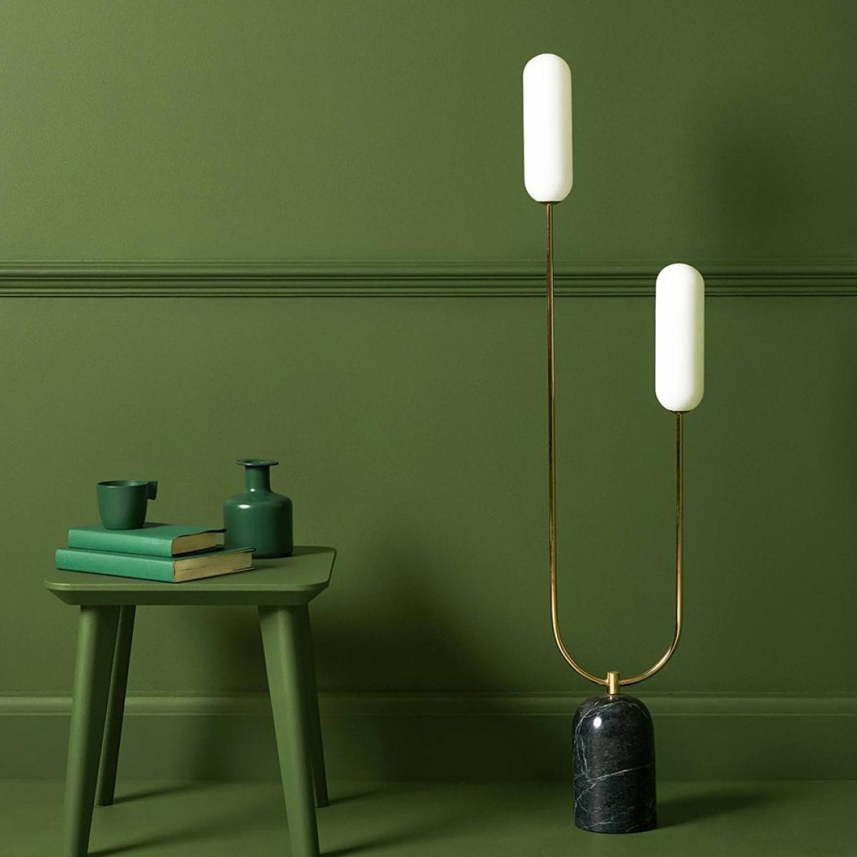 houseof 2 Light Curve Floor Lamp, Green Marble