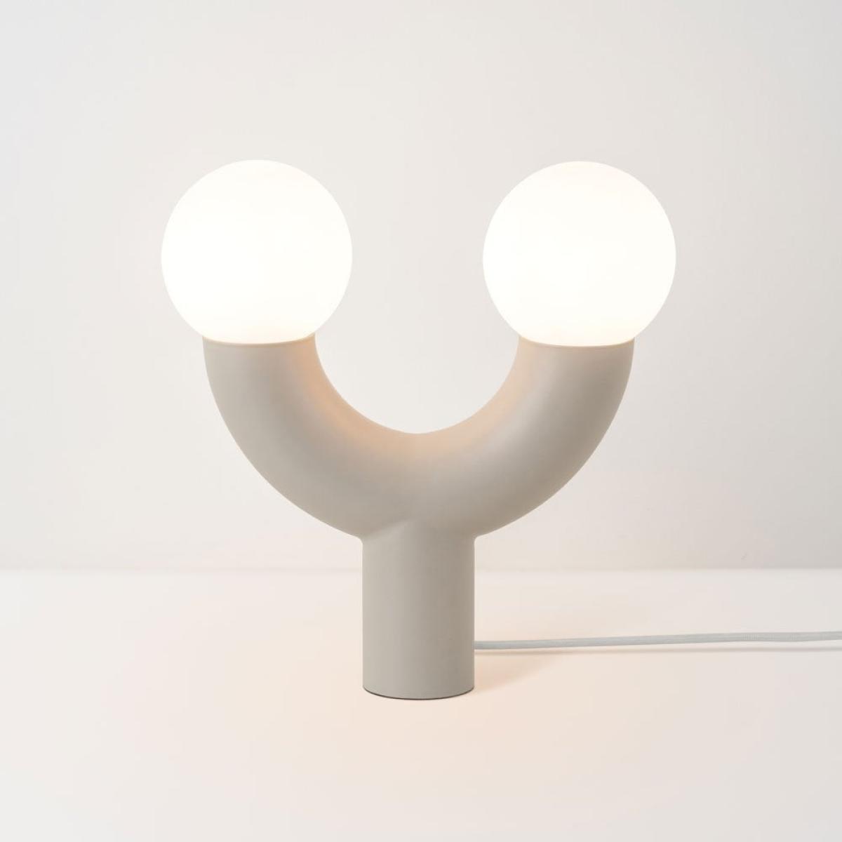 Simple yet striking, the tube table lamp from houseof combines modern 70s appeal with a Scandic twist. With curved tube arms and two opal glass shades to diffuse warm and soft light for a relaxed atmosphere, this table lamp is perfect for those into minimalist design; the matte sand finish emphasises that neutral style down to a tee. houseof is a B Corp Certified company that produces environmentally conscious lighting by minimising waste, using low-impact productions and materials, and offsetting emissions. With daring shapes, pops of colour, and affordable functional designs, Cult Furniture are proud to partner with them.
