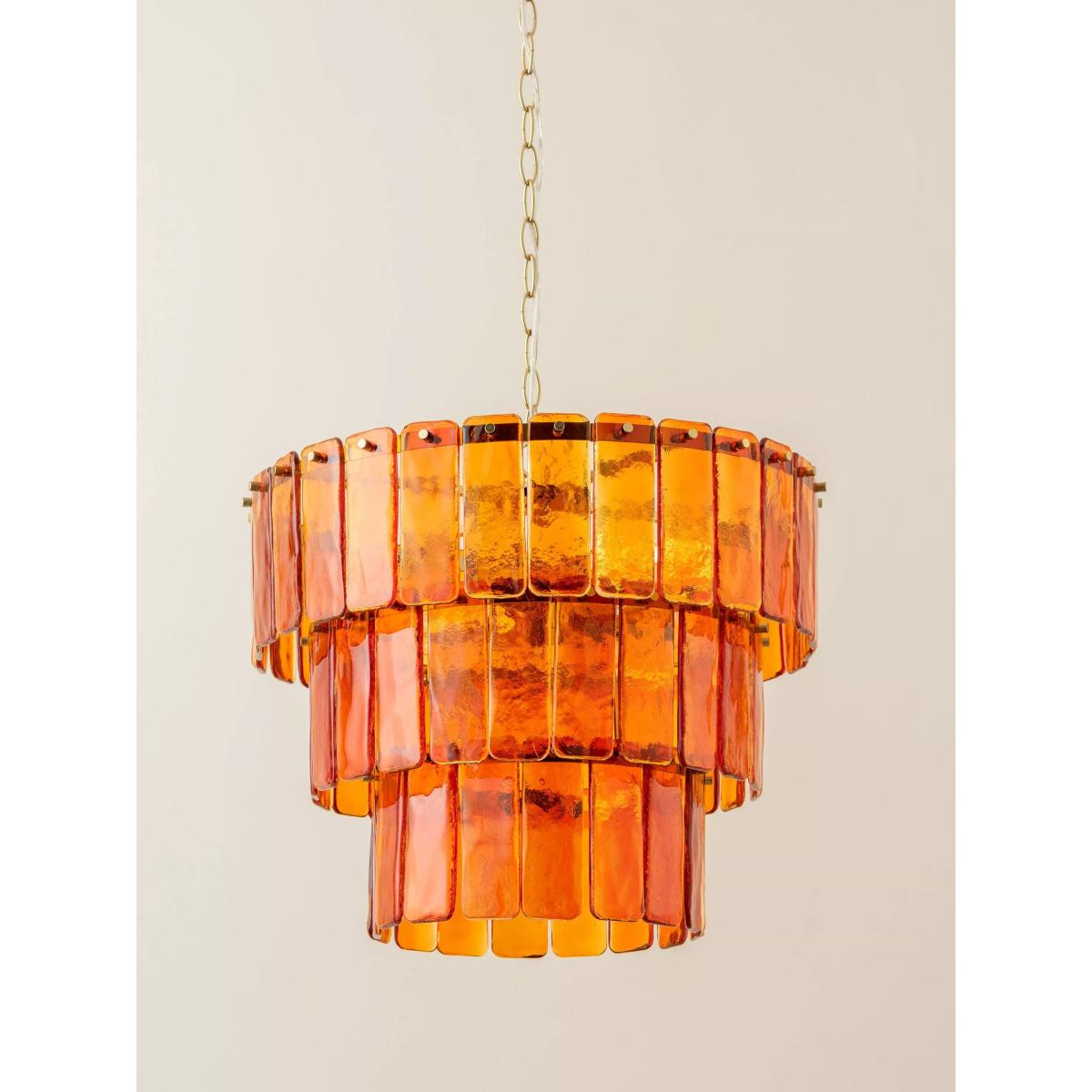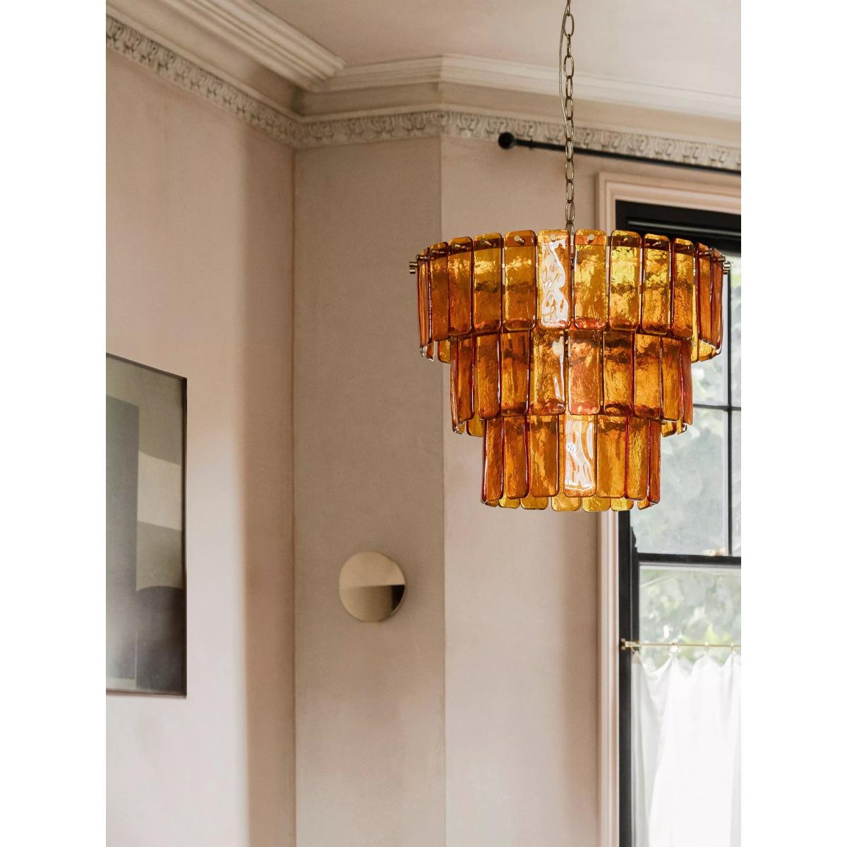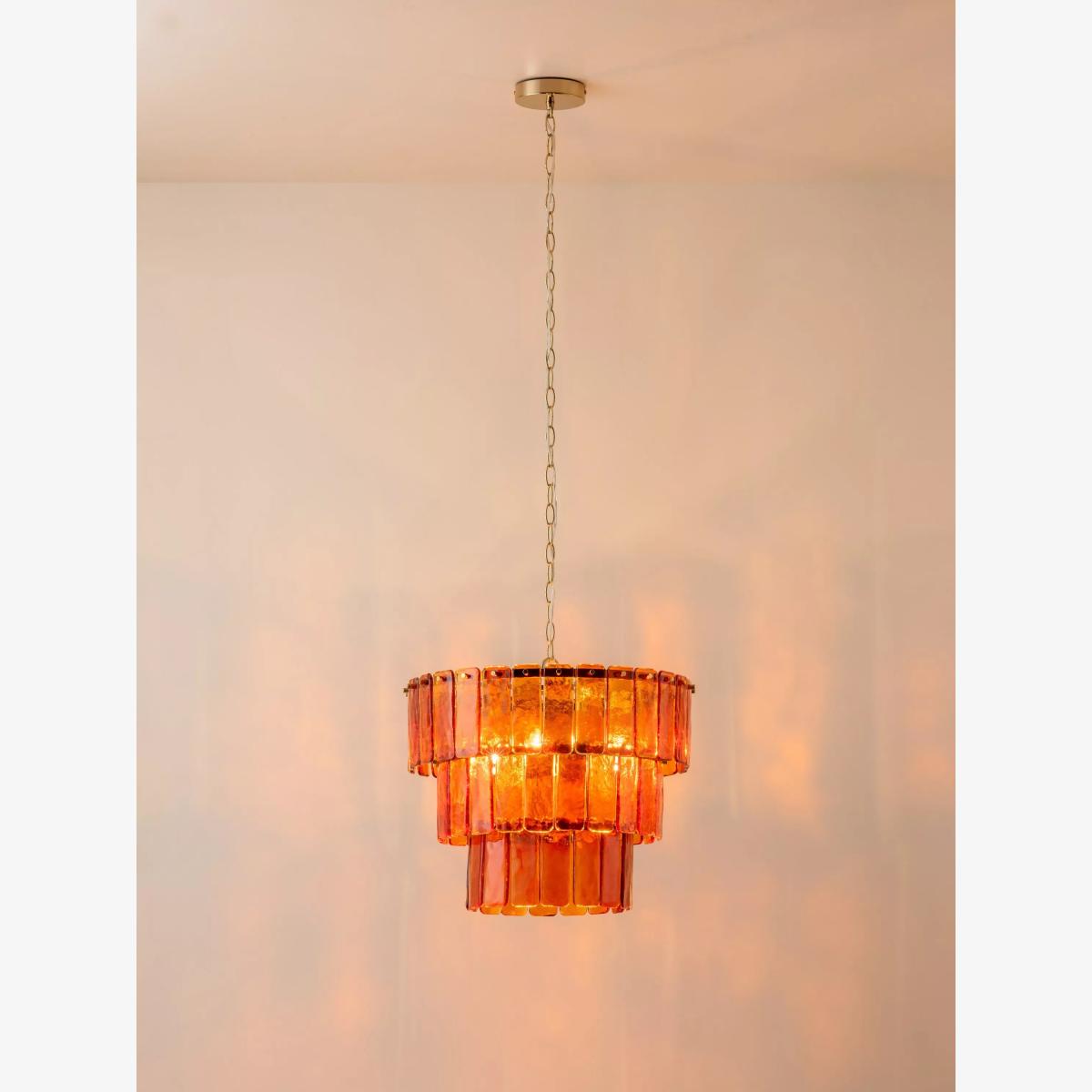 The houseof Amber glass chandelier offers a real statement piece that combines vintage charm with contemporary flair. I love how the layered amber glass gives off a warm, inviting glow, making it perfect for living rooms or dining areas that need a cosy yet stylish focal point. It works well in eclectic, mid-century modern, or boho interiors, where its bold shape and colour add character but can also seamlessly complement more minimalist spaces looking for a pop of colour and texture. Practical styling tips include pairing it with softer lighting in smaller rooms to prevent overwhelming the space, and ensuring the ceiling height allows enough room for the pendant’s length-this design benefits from a higher ceiling to really showcase its tiered silhouette.