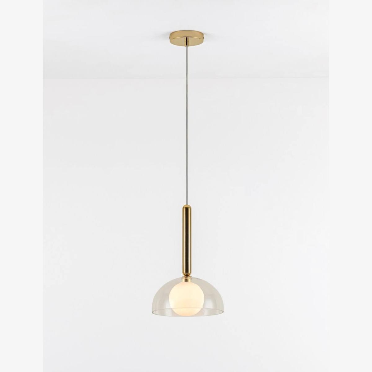 I love this modern glass dome pendant because of its clean, minimal aesthetic that suits a variety of interiors. It works particularly well in contemporary spaces, such as kitchens or dining areas, where a streamlined lighting option is desirable. Its two colour options, typically clear and smoked glass, provide versatility-ideal for blending seamlessly into both neutral and more statement-focused colour schemes. Practical styling tips include hanging it at different heights to create visual interest or pairing it with other brass accents for a cohesive look. This is a versatile piece that adds a touch of understated elegance without overpowering the room.