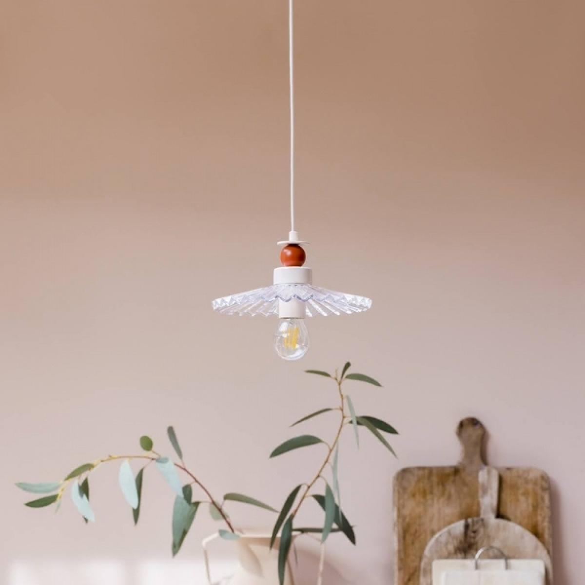 We love the use of colour in this vintage-inspired ceiling light that blends modern style with cosy nostalgia. Taking inspiration from Memphis design trend, this glass ceiling light layers pale pink and burnt orange blocks around the pleated clear glade shade, that pops with an exposed lightbulb. houseof is a B Corp Certified company that produces environmentally conscious lighting by minimising waste, using low-impact productions and materials, and offsetting emissions. With ing shapes, pops of colour, and affordable functional designs, Cult Furniture are proud to partner with them. Material: Metal, Glass Light Bulb: E27 Max Wattage: 42W Bulb Included: No Adjustable:Yes Assembly Required Download Assembly Instructions Care:Wipe with a dry cloth Dimensions Total Size: H 186 x W 25 x D 25cm Shade Size:Dia 25cm Base Size:Dia 12cm Adjustable Cable Length: 170cm Max Drop: 186cm (inc shade) Weight: 1.2kg Packing Dimensions: 32 x 32 x 12cm....