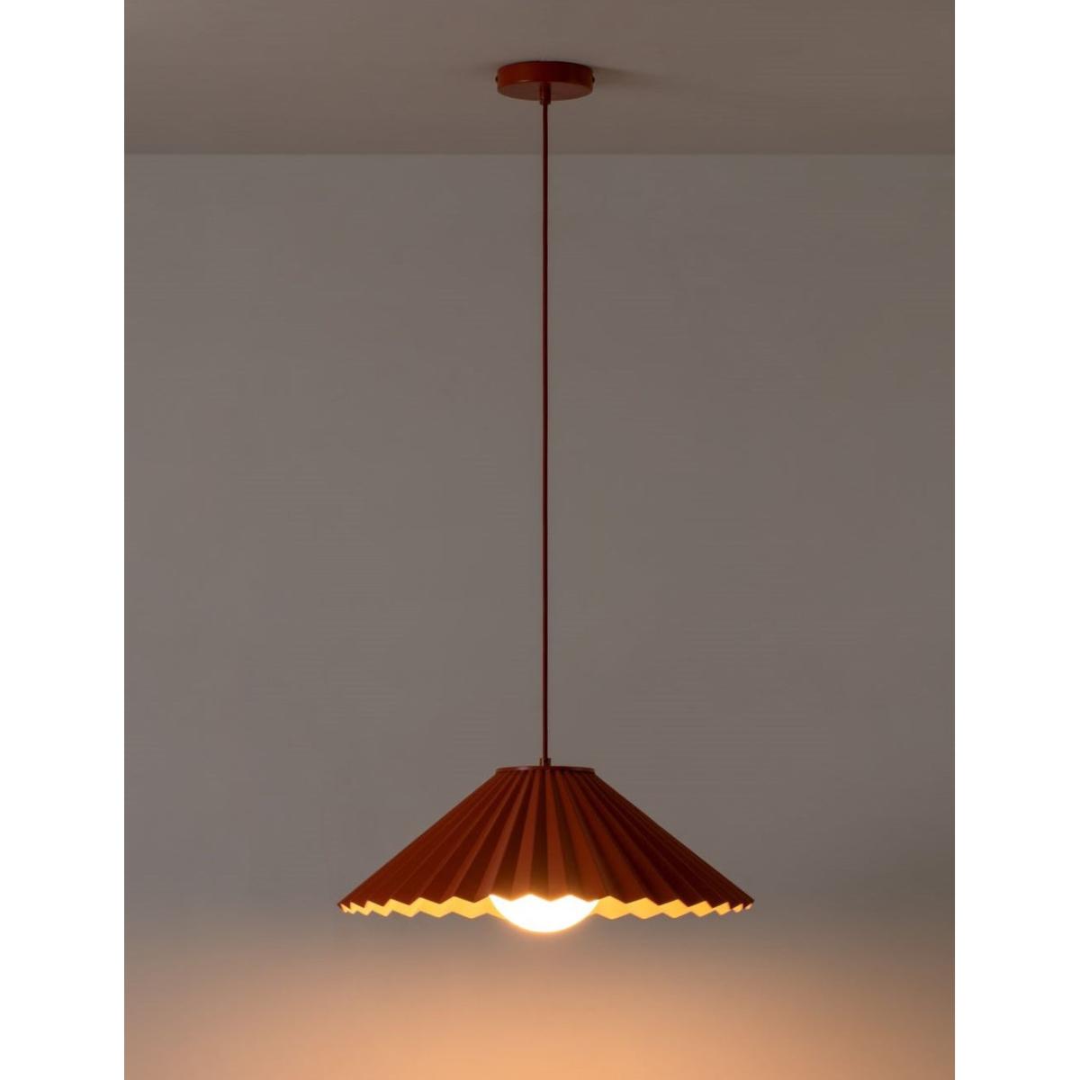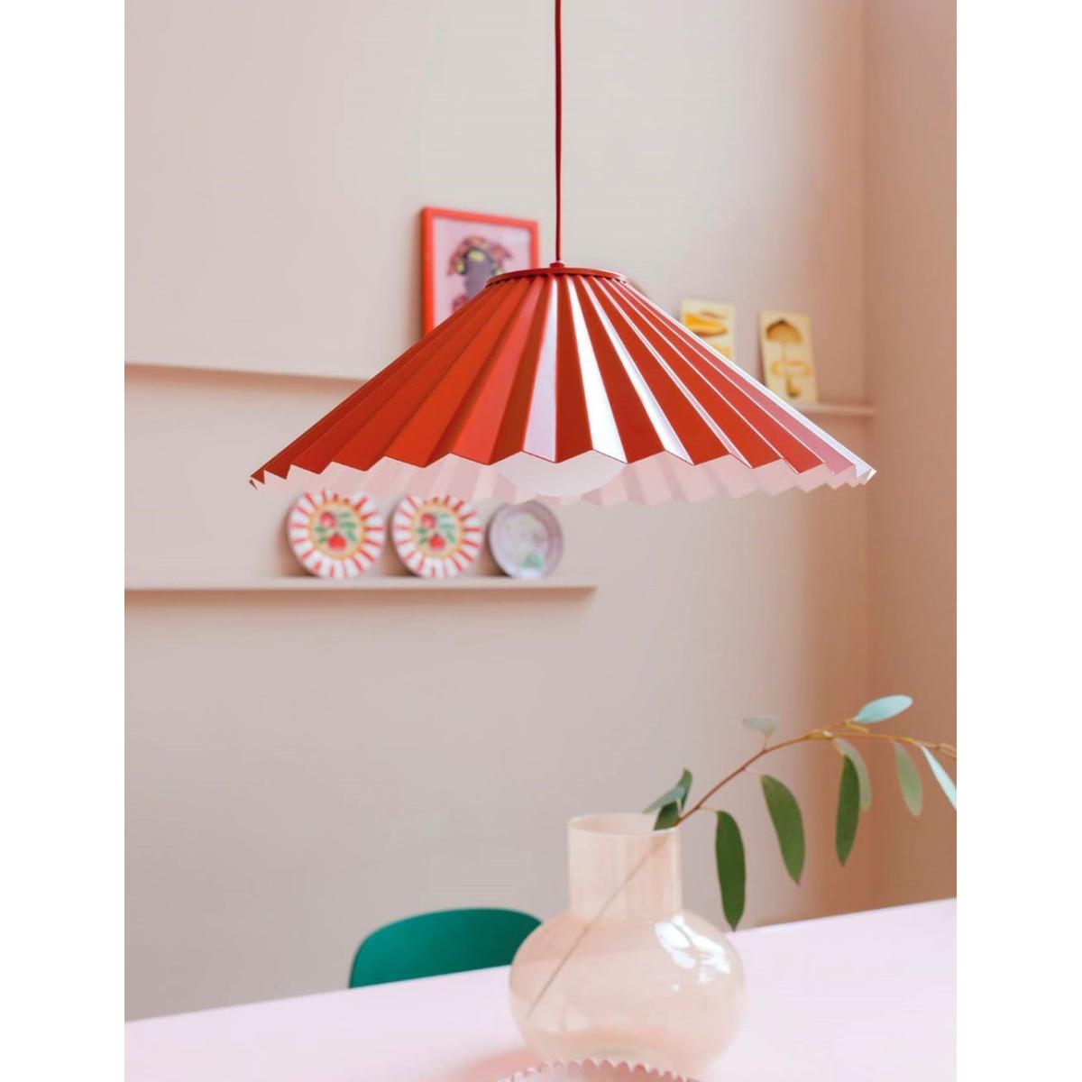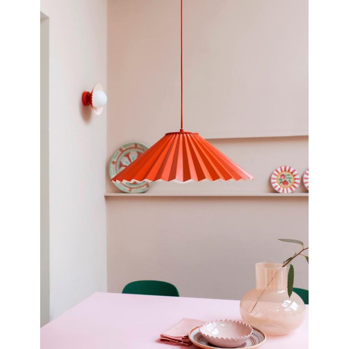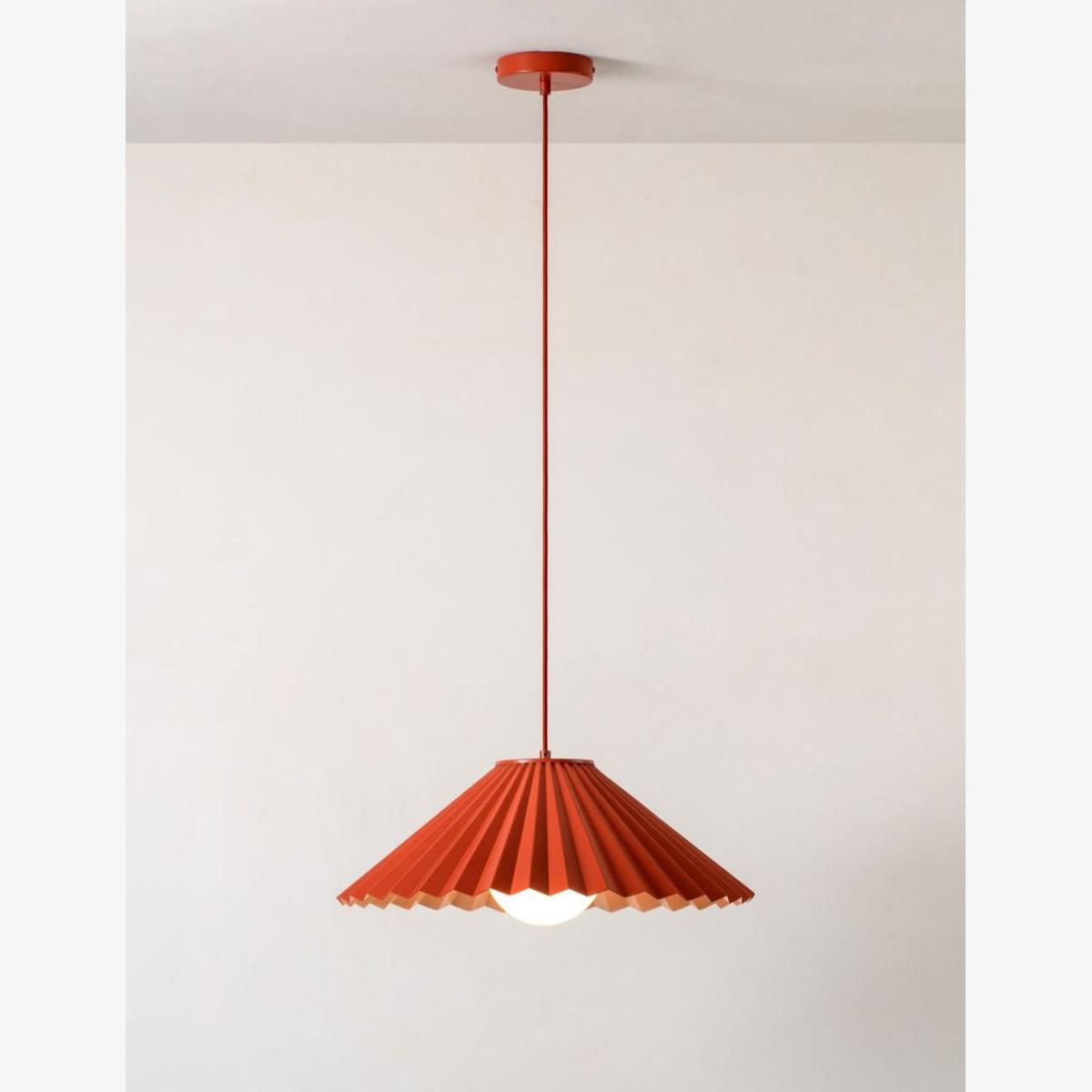 I love the Houseof Pleat pendant for its contemporary yet playful design, making it a statement piece without overwhelming a space. The burnt orange and pale pink palette is versatile, working well in interiors that blend modern minimalism with a touch of colour, such as scandi-inspired schemes or eclectic rooms. It’s particularly effective in kitchens, dining areas, or even a cosy nook, where it can add warmth and visual interest. For styling tips, consider pairing it with neutral or textured furnishings to let the pendant stand out, and hang at a height that provides both functional lighting and visual impact. Its pleated design also brings subtle texture, perfect for adding depth in clean-lined interiors.