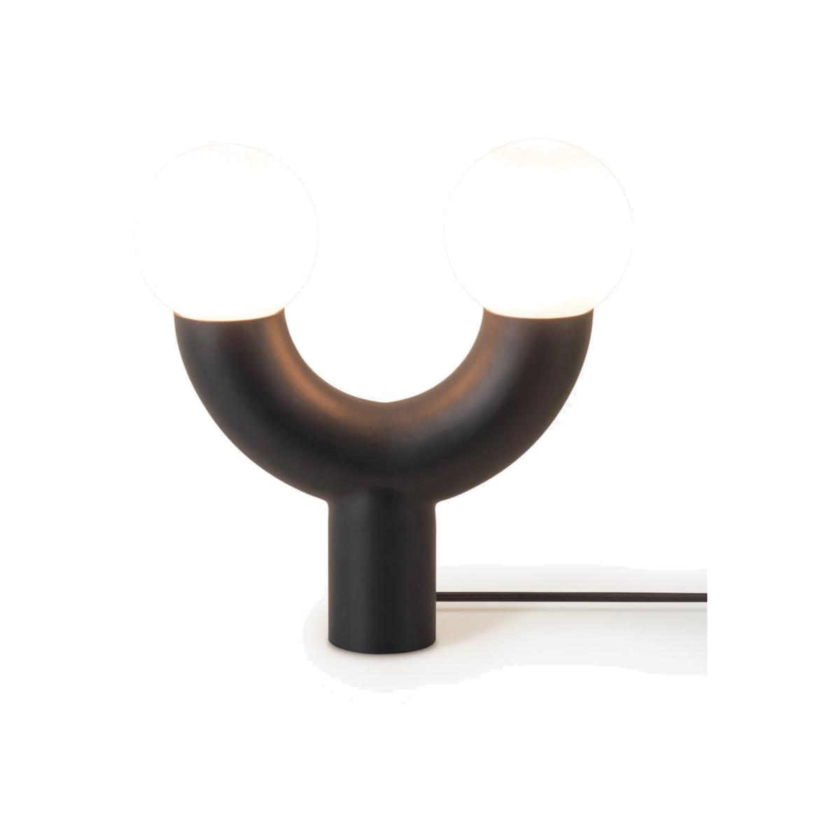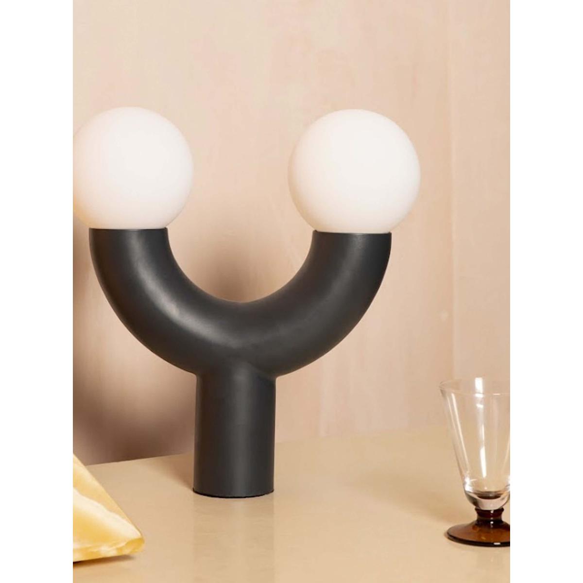 The playful houseof Tube table lamp brings the minimalist trend to your home. Two glass shades emit a warm glow, while the bold curve mimics a smile. Ideal for sideboards, coffee tables and any other surface that'll show it off.