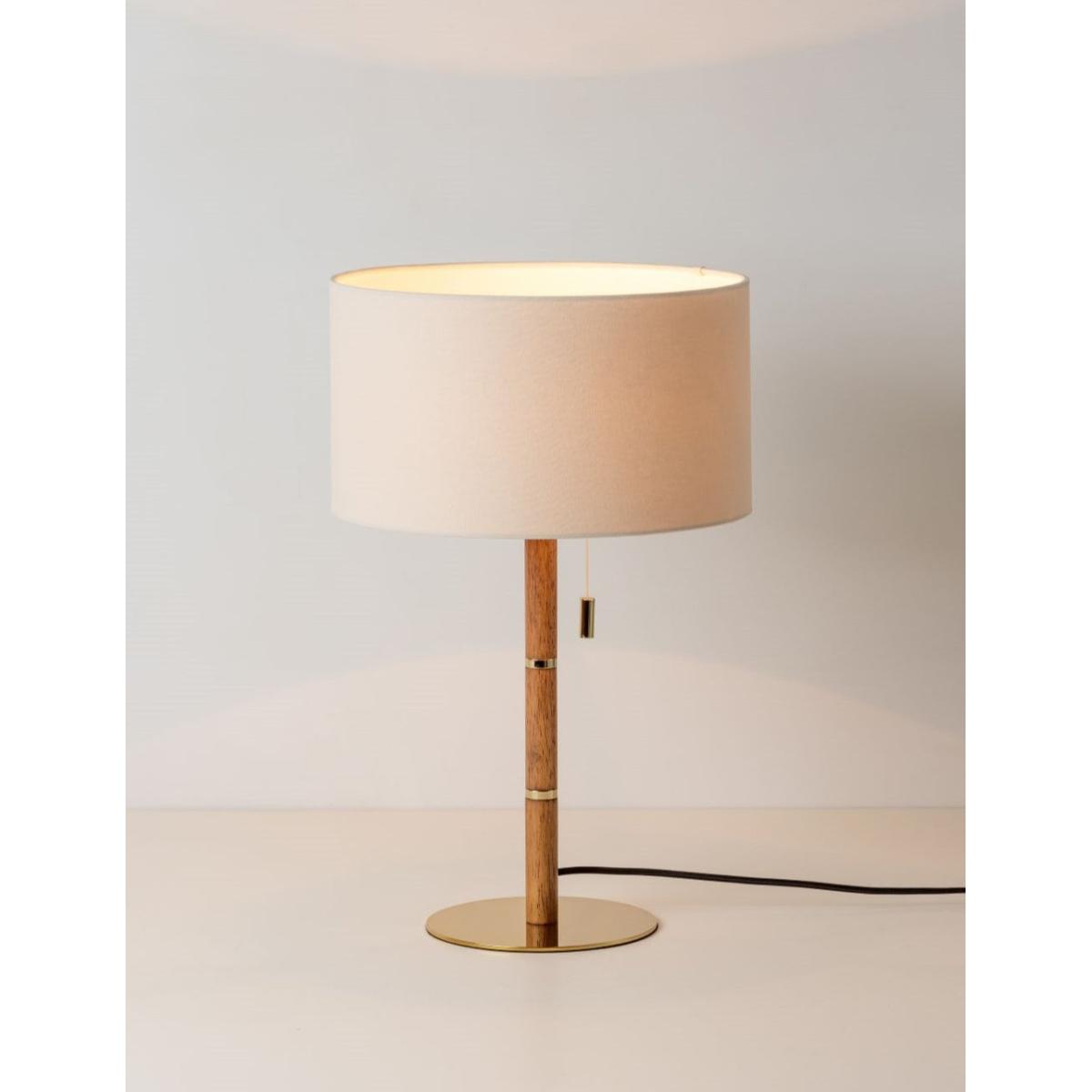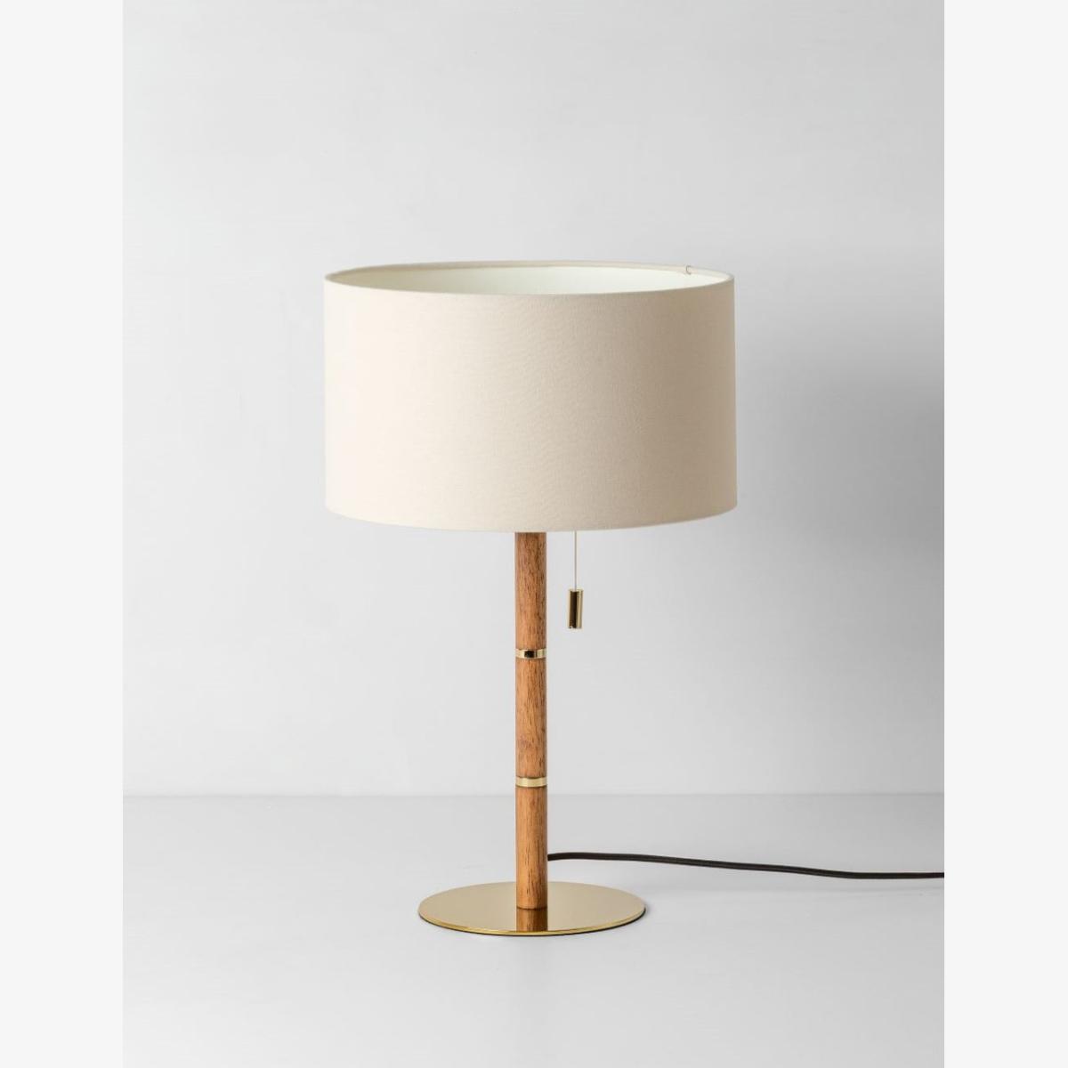 Houseof Wooden and Brass Disk Table Lamp Wood and Brass
