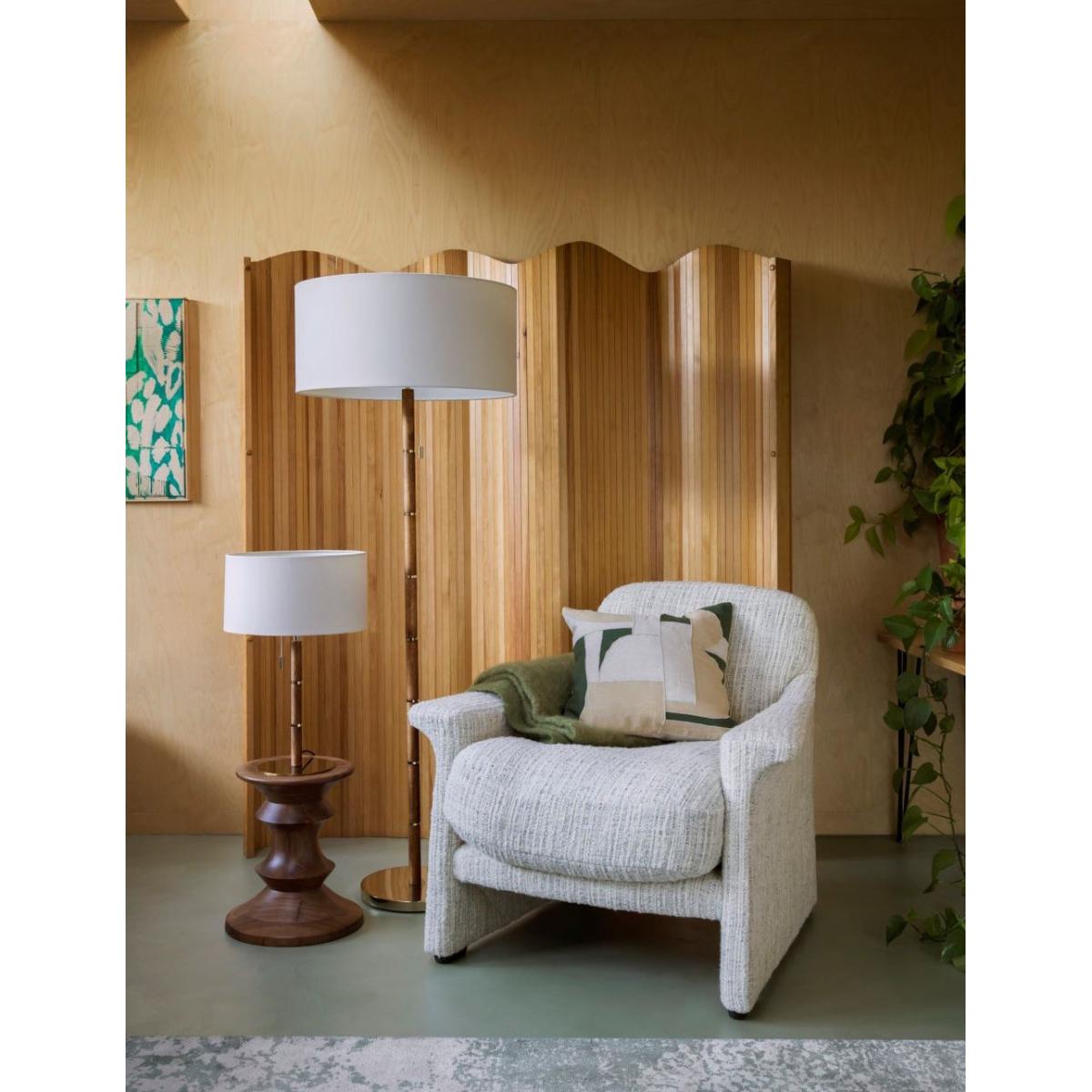 I love this table lamp for its clean, minimalist design and the beautiful contrast between the warm wood and polished brass. It’s versatile enough to work well in both modern and Scandinavian-inspired interiors, adding a touch of understated elegance without overwhelming the space. Practical styling tips include placing it on a side table or console to create a cosy reading nook or using it to add a subtle glow on a bedroom bedside table. Keep accompanying accessories simple to let the material mix stand out, and consider pairing it with muted or neutral tones for a cohesive look.