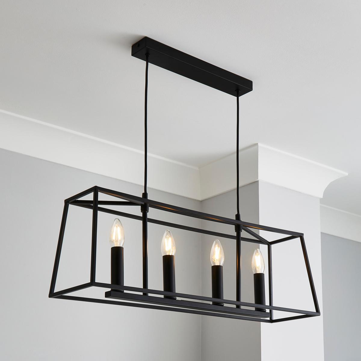 Add a statement piece to your home with the Houston 4 Light Diner Ceiling Fitting, this unique design will bring a modern feel to your kitchen dining space. Made from metal with a black painted frame, base and four candlelight bulb holders. Complete with adjustable black cables to allow the light fitting to sit at your desired height. This stylish piece can be coordinated with matching family items from the Houston range.