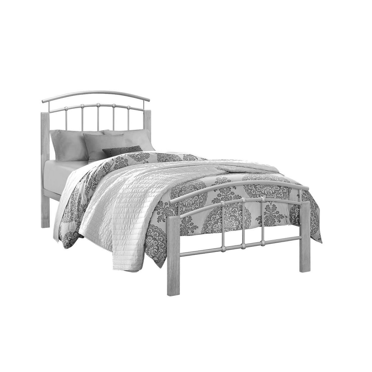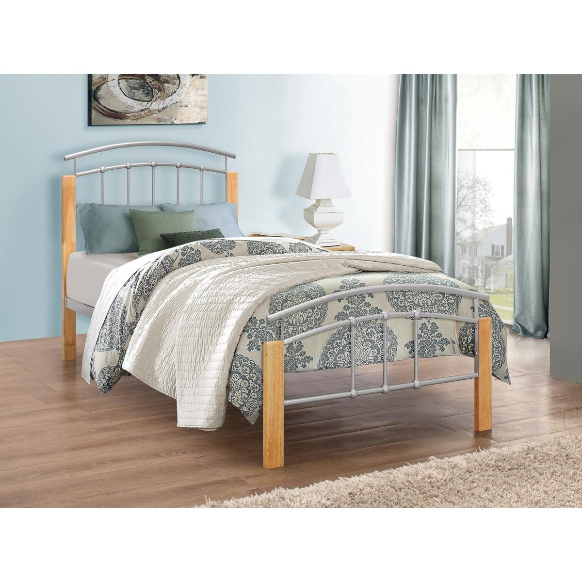 Beech coloured posts crafted from solid rubberwood are offset by the striking silver curved frame with the Houston bed. The steel frame is covered with a powder coated silver paint which really stands out. Striking curved frame 90cm bed frame Beech coloured posts Simple to assemble