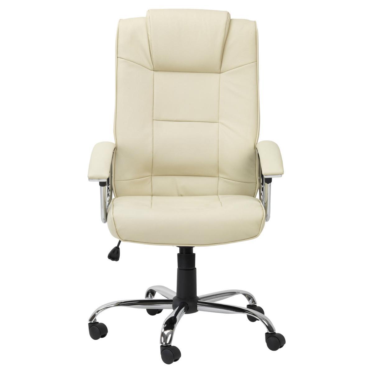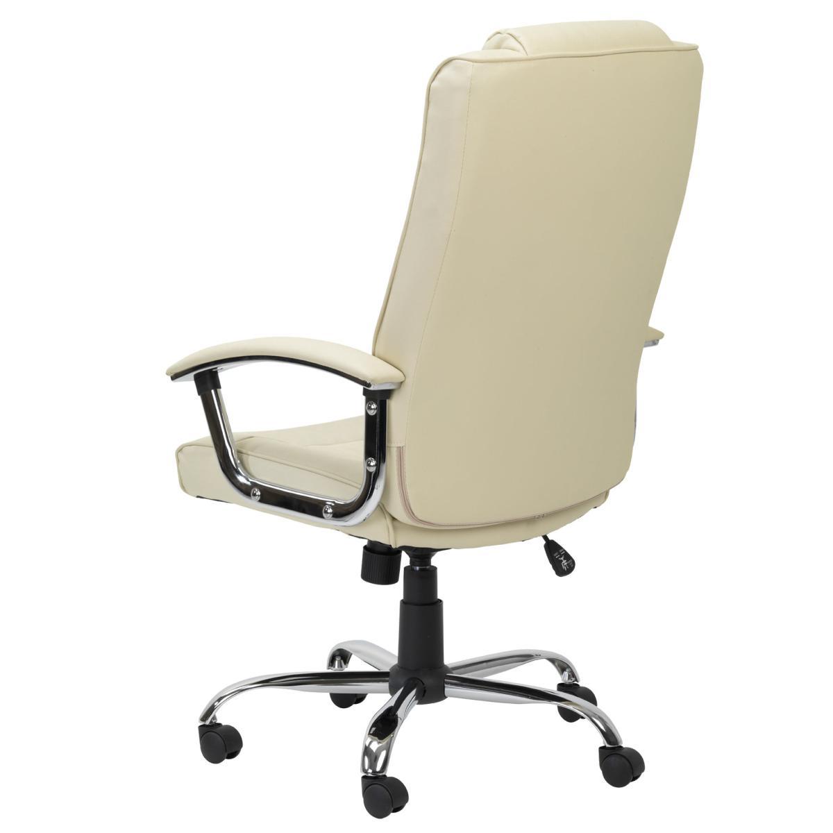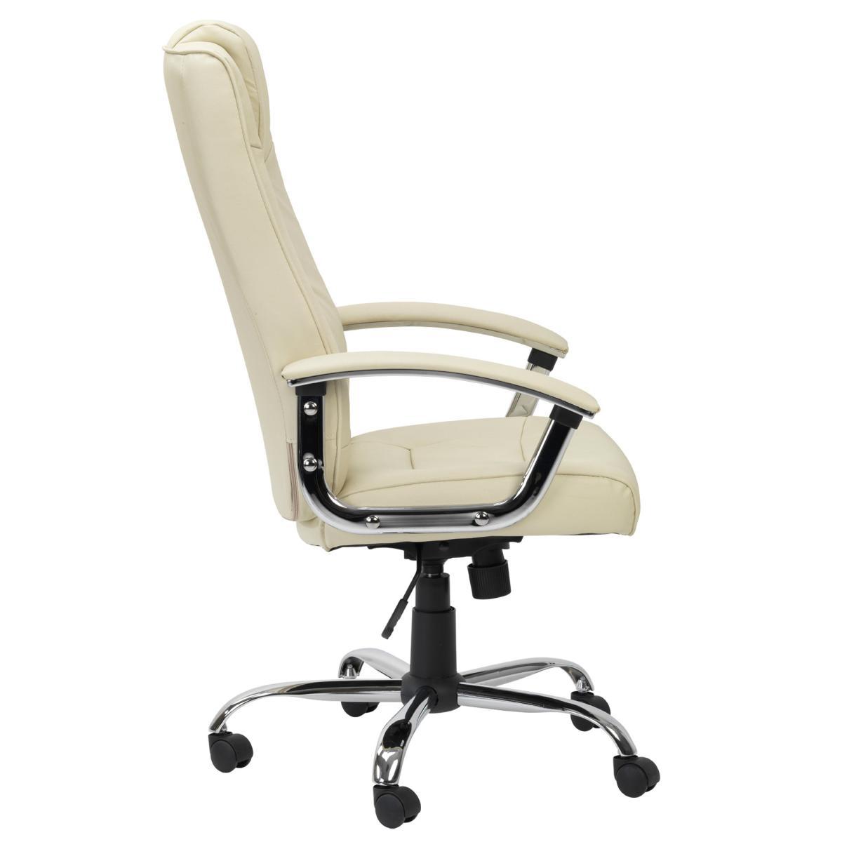 Featuring a beautifully designed leather back and seat perfectly complimented by a chrome feet and armrests, the Houston is a modern executive chair that would look ideal with any décor. The generous padding on the back and arms offers sumptuous comfort, whilst the padded headrest provides additional neck and back support. This self-assembly chair is available in a choice of black and cream colourways and features traditional tilt mechanism with tension control and height adjustment, making it the perfect addition to any home office space. Please note, unfortunately we cannot deliver this item to Northern Ireland or the Channel Islands.