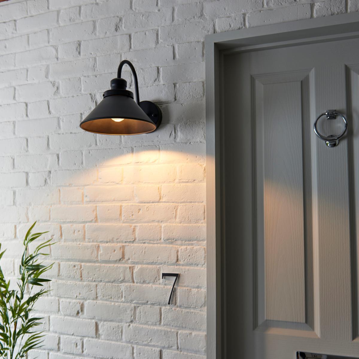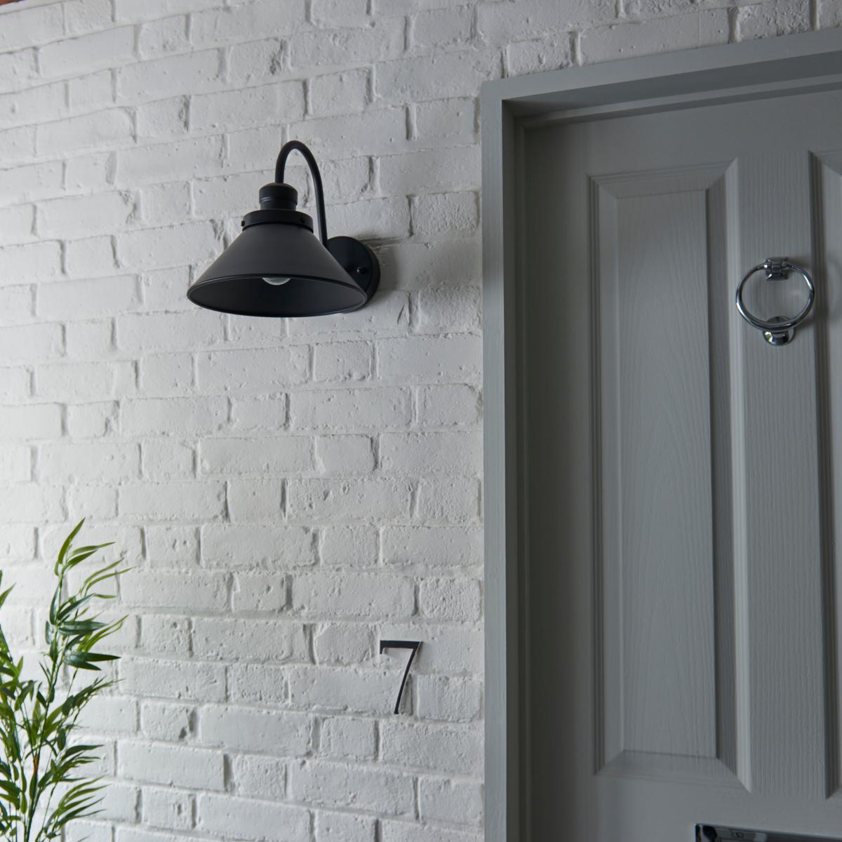 Available in a choice of stylish matt black and grey finishes, the Houston wall light offers a classic industrial style with a sleek modern twist, and is IP44 rated, making it perfect for lighting your outdoor space or bathroom.