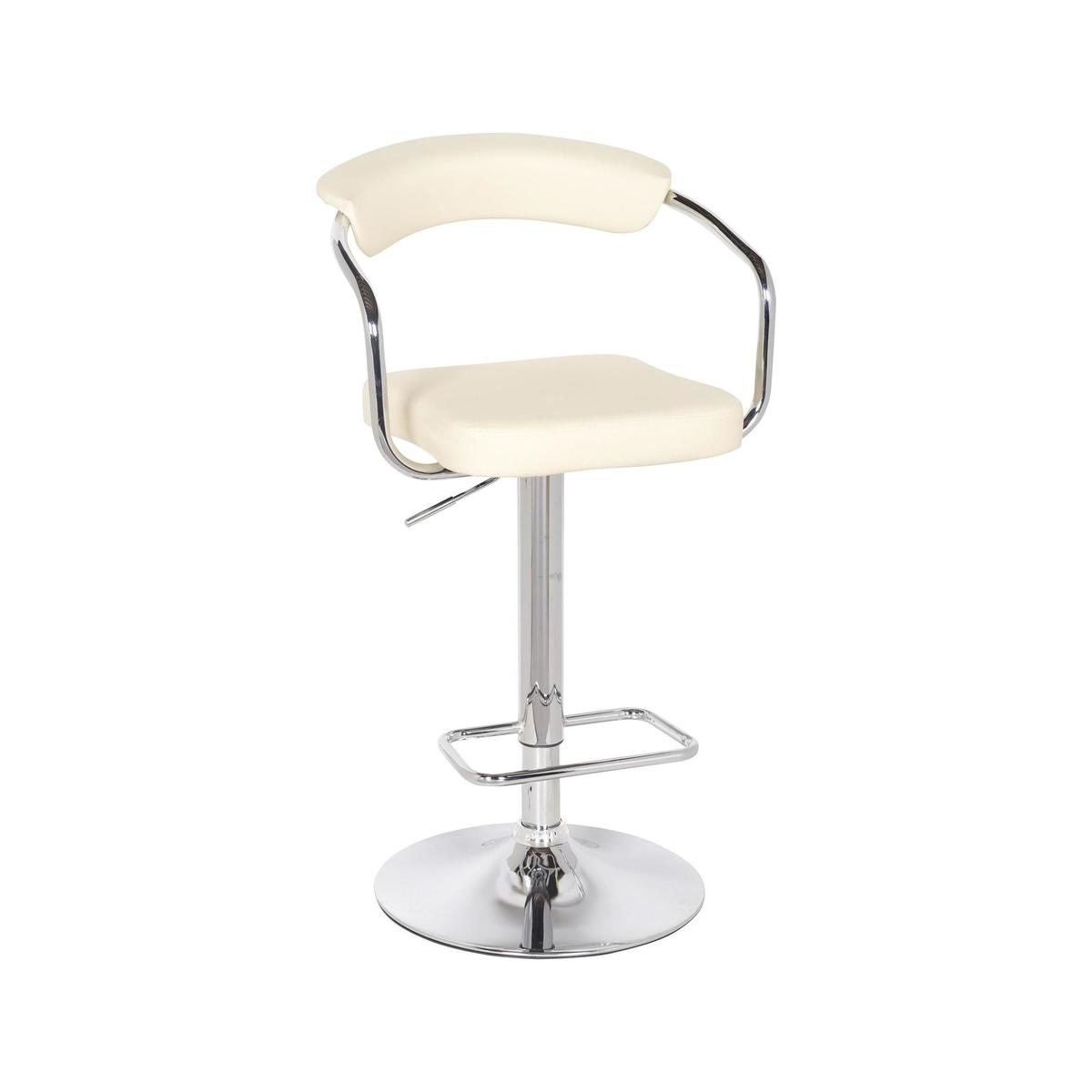 Featuring an adjustable height lever with an 8 inch range, this upholstered cream bar stool features a soft padded seat with a curved back and a sturdy footrest on a smooth chrome base.\n\nSeat Height 61-82cm\nSeat Width 38cm\nSeat Depth 41cm\n\nPlease note: Maximum recommended weight is 120Kg.\n\nPlease Note: This product and any of its fabrics have been manufactured for domestic use only.