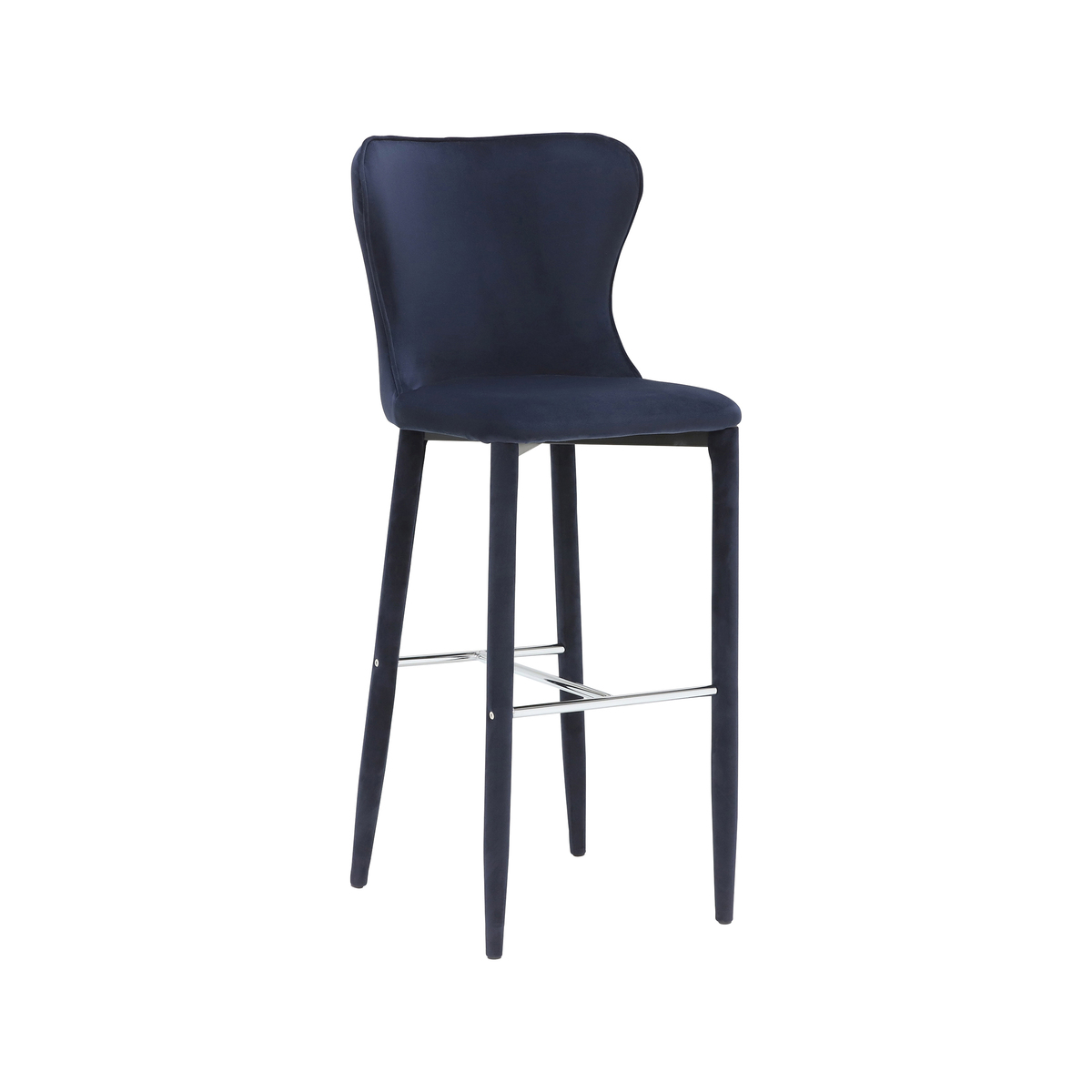 Casual comfort has never looked so good. Available in deep navy, rich blue or soft grey upholstery, the Howell velvet bar stool is a contemporary addition to any kitchen or dining room. Benefiting from a foam filled seat and curvaceous back, it offers enduring support throughout mealtimes and evenings spent with loved ones. The bar stool’s compact design and slim frame allows it to be tucked away when not in use, while a handy footrest in shiny silver adds a pop of glamour. Giving a unique touch to the look, Howell’s legs are dressed in velvet to match the seat.
