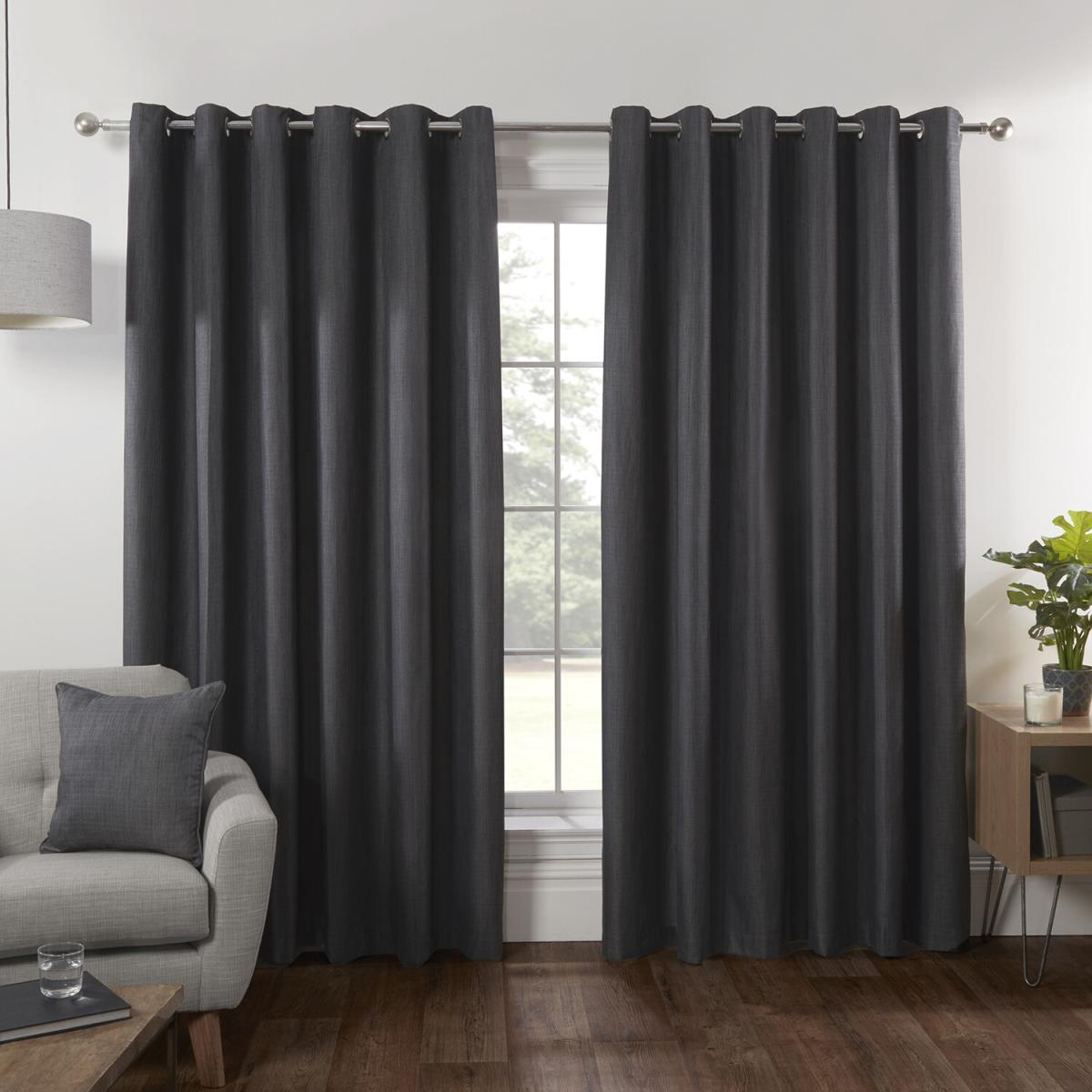 Hoxton Blackout Eyelet Curtains - Charcoal / 168cm / 183cm