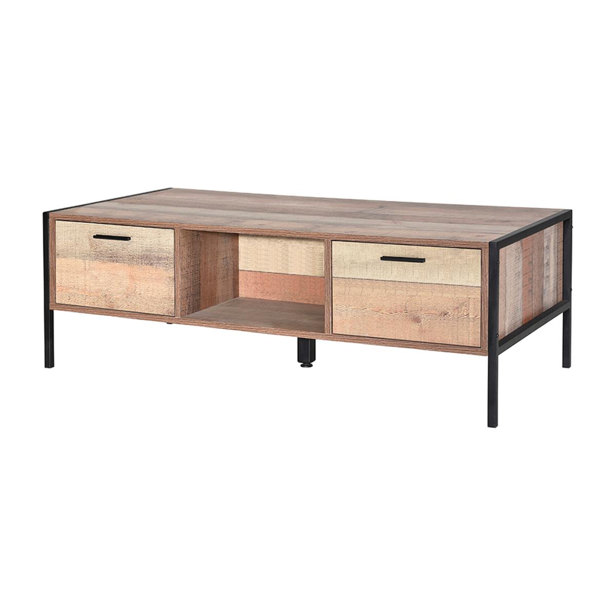 Stylish and affordable, this Hoxton Coffee Table and Drawers radiates industrial chic. The Hoxton Coffee Table is the perfect solution for those wanting to inject some contemporary industrial chic into their homes without paying a small fortune for the privilege. Crafted with a vintage plank effect wood with black metal frames, this coffee table will be a lovely addition to your living room. Featuring drawers and a shelf for storage, it will help to keep your space organised and looking stylish.