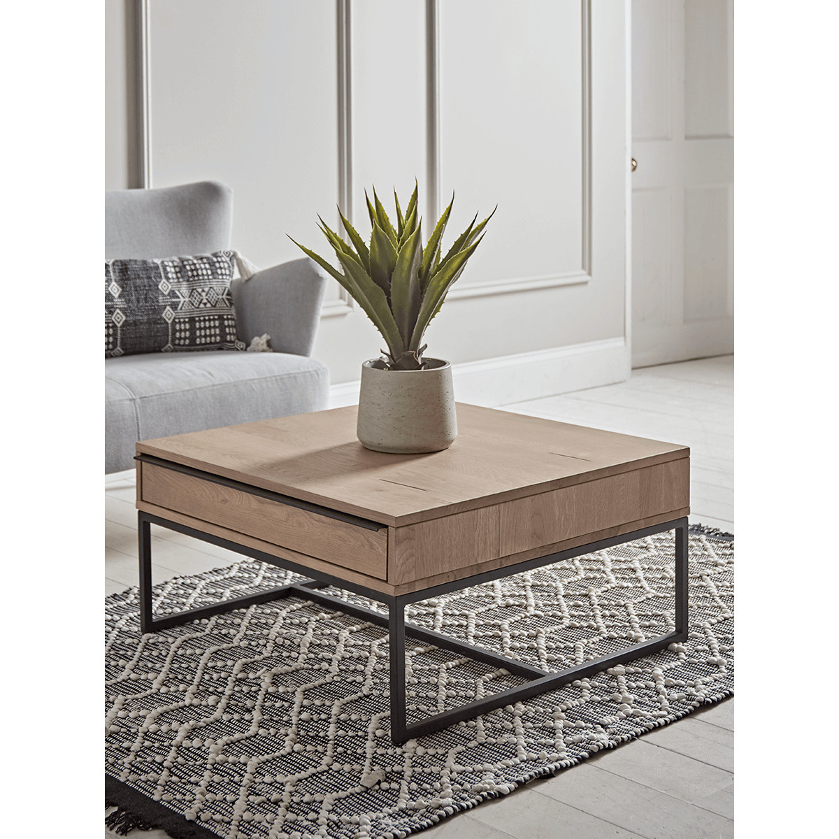 I love the Hoxton coffee table for its clean, minimalist design that works well in modern or Scandi-inspired interiors. Its neutral wood finish makes it adaptable to both light and darker colour schemes, while the compact square shape maximises space in smaller living rooms. Styling tips include keeping it clutter-free with a simple tray or a few statement books, or adding a touch of greenery like the plant pictured for a natural touch. It’s versatile enough to serve as both a focal point and a functional surface for drinks or décor, making it a practical yet stylish addition to a wide range of living spaces.