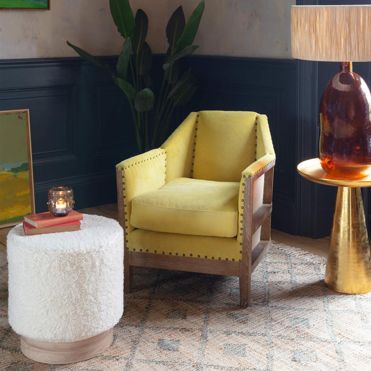I love this mustard cord armchair for its vibrant colour and rich texture, making it a fantastic statement piece in both modern and vintage-inspired interiors. Its warm tone works particularly well in neutral schemes or alongside darker hues, helping to create a cosy, inviting nook. For styling tips, consider pairing it with contrasting cushions or a throw to add visual interest, or position it next to a sleek side table to balance its plush feel with practicality. It’s versatile enough to work in living rooms, reading corners, or bedrooms, especially when you want to introduce a pop of colour and tactile appeal to the space.
