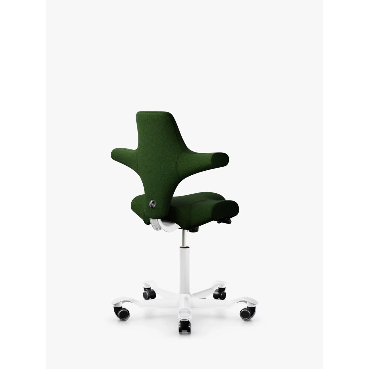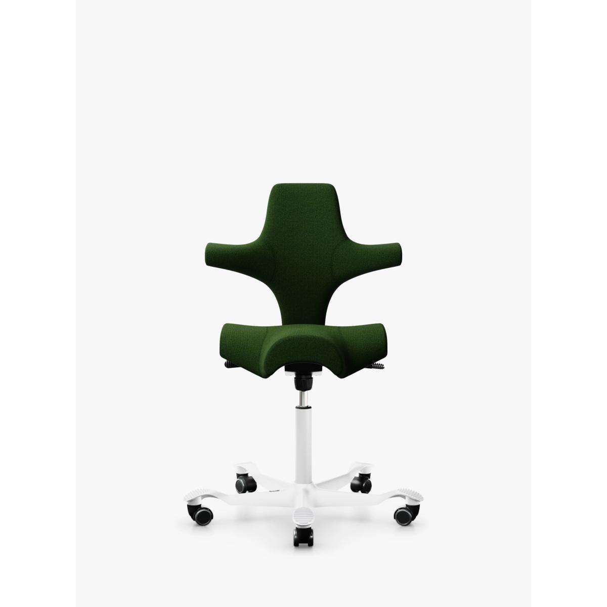 The HÅG Capisco 8106 office chair is a celebration of innovative, unconventional design, and it will add personality to any space while providing true ergonomic support. Renowned Norwegian designer Peter Opsvik originally created the chair in 1984 in an attempt to overcome stereotypical sitting habits. The result is this distinctive saddle seat, inspired by a horseback rider's dynamic posture. It offers endless ways to sit or half-stand, and encourages you to vary your position throughout the working day for increased energy, creativity and a healthier posture. Plus, it's one of the most responsibly manufactured office chairs. 95% of the polypropylene plastic used is recycled, mainly from post-consumer waste plastic and it's not made with glue or any other harmful substances. Customisable adjustments for an active sitting experience With a flexible sit-stand seat and height range, it's easy to switch between sitting, standing and perching Varying your position during the working day will help you to feel more energised and focused on your work. It also helps to reduce fatigue that is often associated with standing desks Adjust the seat depth forwards and backwards to get backrest support for a resting position Adjust the backrest height for optimal comfort and elbow support The backrest tilts and can be locked into a position. Lock it in a neutral position when you sit sideways or backwards and unlock it for a natural rocking motion when sitting normally It's made with a ridged foot support that provides grip and helps you to vary the position of your feet Unique saddle seat The saddle seat enables a balanced posture and greater freedom of movement when sitting down to work With this posture, the lumbar curve is preserved, the hip joint angles are open and muscles are well-balanced and relaxed. This helps to eliminate the strain on your body which is often associated with conventional sitting positions The seat offers the ability to move without needing to leave your work station, making sitting active and adding energy and flow to your day Minimalist design with the environment in mind The number of components and types of materials used to create this chair has been reduced to a minimum, making it a front-runner in eco-design The chair can be dis-assembled so that the various materials can be separated from each other to facilitate recycling This office chair was the first in the world to be certified with the Nordic Swan Ecolabel in 2010. In 2015, it received the EPRO award for 'Best Recycled Plastic Product' in Europe Iconic, Scandinavian design With its elegant curves and smooth performance, this distinctive chair will stand out in your work space Its flexibility means it will never look out of place, whether it's in the office, your home office or a collaborative meeting room Its clever shape allows you to twist and turn to face your peers, adding personality and energy to your work place The base is available in a choice of painted finishes Want to see it first? You may want to see and get a feel for the furniture in one of our shops before ordering. We'll be able to tell you where the range you'd like to view is on display.