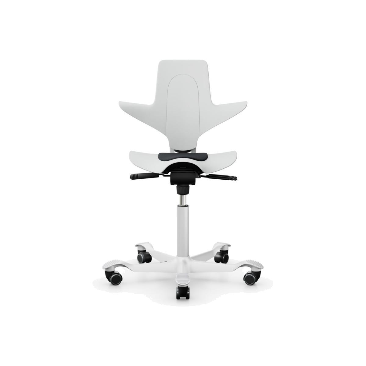 With its light, edgy-shaped back, the HÅG Capisco Puls 8010 provides you with all the benefits of the original Capisco model, but it’s more lightweight and easy to clean. With a plastic shell and additional fabric seat pad for comfort, it’s part of the HÅG Capisco concept and celebrates innovative, unconventional design. Renowned Norwegian designer Peter Opsvik originally created the chair in 1984 in an attempt to overcome stereotypical sitting habits. The result is this distinctive saddle seat, inspired by a horseback rider’s dynamic posture. It offers endless ways to sit or half-stand, and encourages you to vary your position throughout the working day for increased energy, creativity and a healthier posture. Plus, it’s one of the most responsibly manufactured office chairs. 95% of the polypropylene plastic used is recycled, mainly from post-consumer waste plastic and it’s not made with glue or any other harmful substances. Customisable adjustments for an active sitting experience With a flexible sit-stand seat and height range, it’s easy to switch between sitting, standing and perching Varying your position during the working day will help you to feel more energised and focused on your work. It also helps to reduce fatigue that is often associated with standing desks Adjust the seat depth forwards and backwards to get backrest support for a resting position Adjust the backrest height for optimal comfort and elbow support The backrest tilts and can be locked into a position. Lock it in a neutral position when you sit the other way around and unlock it for a natural rocking motion when sitting normally It’s made with a ridged foot support that provides grip and helps you to vary the position of your feet Unique saddle seat The saddle seat enables a balanced posture and greater freedom of movement when sitting down to work With this posture, the lumbar curve is preserved, the hip joint angles are open and muscles are well-balanced and relaxed. This helps to eliminate the strain on your body which is often associated with conventional sitting positions The seat offers the ability to move without needing to leave your work station, making sitting active and adding energy and flow to your day Minimalist design with the environment in mind The number of components and types of materials used to create this chair has been reduced to a minimum, making it a front-runner in eco-design The chair can be dis-assembled so that the various materials can be separated from each other to facilitate recycling This office chair was the first in the world to be certified with the Nordic Swan Ecolabel in 2010. In 2015, it received the EPRO award for ‘Best Recycled Plastic Product’ in Europe Iconic, Scandinavian design With its elegant curves and smooth performance, this distinctive chair will stand out in your work space Its flexibility means it will never look out of place, whether it’s in the office, your home office or a collaborative meeting room Its clever shape allows you to twist and turn to face your peers, adding personality and energy to your work place The base is available in a choice of painted finishes Want to see it first? You may want to see and get a feel for the furniture in one of our shops before ordering. We'll be able to tell you where the range you'd like to view is on display.