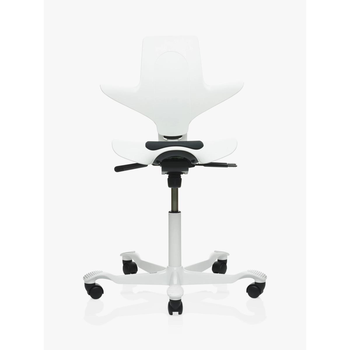 With its light, edgy-shaped back, the HÅG Capisco Puls 8010 provides you with all the benefits of the original Capisco model, but it’s more lightweight and easy to clean. With a plastic shell and additional fabric seat pad for comfort, it’s part of the HÅG Capisco concept and celebrates innovative, unconventional design. Renowned Norwegian designer Peter Opsvik originally created the chair in 1984 in an attempt to overcome stereotypical sitting habits. The result is this distinctive saddle seat, inspired by a horseback rider’s dynamic posture. It offers endless ways to sit or half-stand, and encourages you to vary your position throughout the working day for increased energy, creativity and a healthier posture. Plus, it’s one of the most responsibly manufactured office chairs. 95% of the polypropylene plastic used is recycled, mainly from post-consumer waste plastic and it’s not made with glue or any other harmful substances. Customisable adjustments for an active sitting experience With a flexible sit-stand seat and height range, it’s easy to switch between sitting, standing and perching Varying your position during the working day will help you to feel more energised and focused on your work. It also helps to reduce fatigue that is often associated with standing desks Adjust the seat depth forwards and backwards to get backrest support for a resting position Adjust the backrest height for optimal comfort and elbow support The backrest tilts and can be locked into a position. Lock it in a neutral position when you sit the other way around and unlock it for a natural rocking motion when sitting normally It’s made with a ridged foot support that provides grip and helps you to vary the position of your feet Unique saddle seat The saddle seat enables a balanced posture and greater freedom of movement when sitting down to work With this posture, the lumbar curve is preserved, the hip joint angles are open and muscles are well-balanced and relaxed. This helps to eliminate the strain on your body which is often associated with conventional sitting positions The seat offers the ability to move without needing to leave your work station, making sitting active and adding energy and flow to your day Minimalist design with the environment in mind The number of components and types of materials used to create this chair has been reduced to a minimum, making it a front-runner in eco-design The chair can be dis-assembled so that the various materials can be separated from each other to facilitate recycling This office chair was the first in the world to be certified with the Nordic Swan Ecolabel in 2010. In 2015, it received the EPRO award for ‘Best Recycled Plastic Product’ in Europe Iconic, Scandinavian design With its elegant curves and smooth performance, this distinctive chair will stand out in your work space Its flexibility means it will never look out of place, whether it’s in the office, your home office or a collaborative meeting room Its clever shape allows you to twist and turn to face your peers, adding personality and energy to your work place The base is available in a choice of painted finishes Want to see it first? You may want to see and get a feel for the furniture in one of our shops before ordering. We'll be able to tell you where the range you'd like to view is on display.